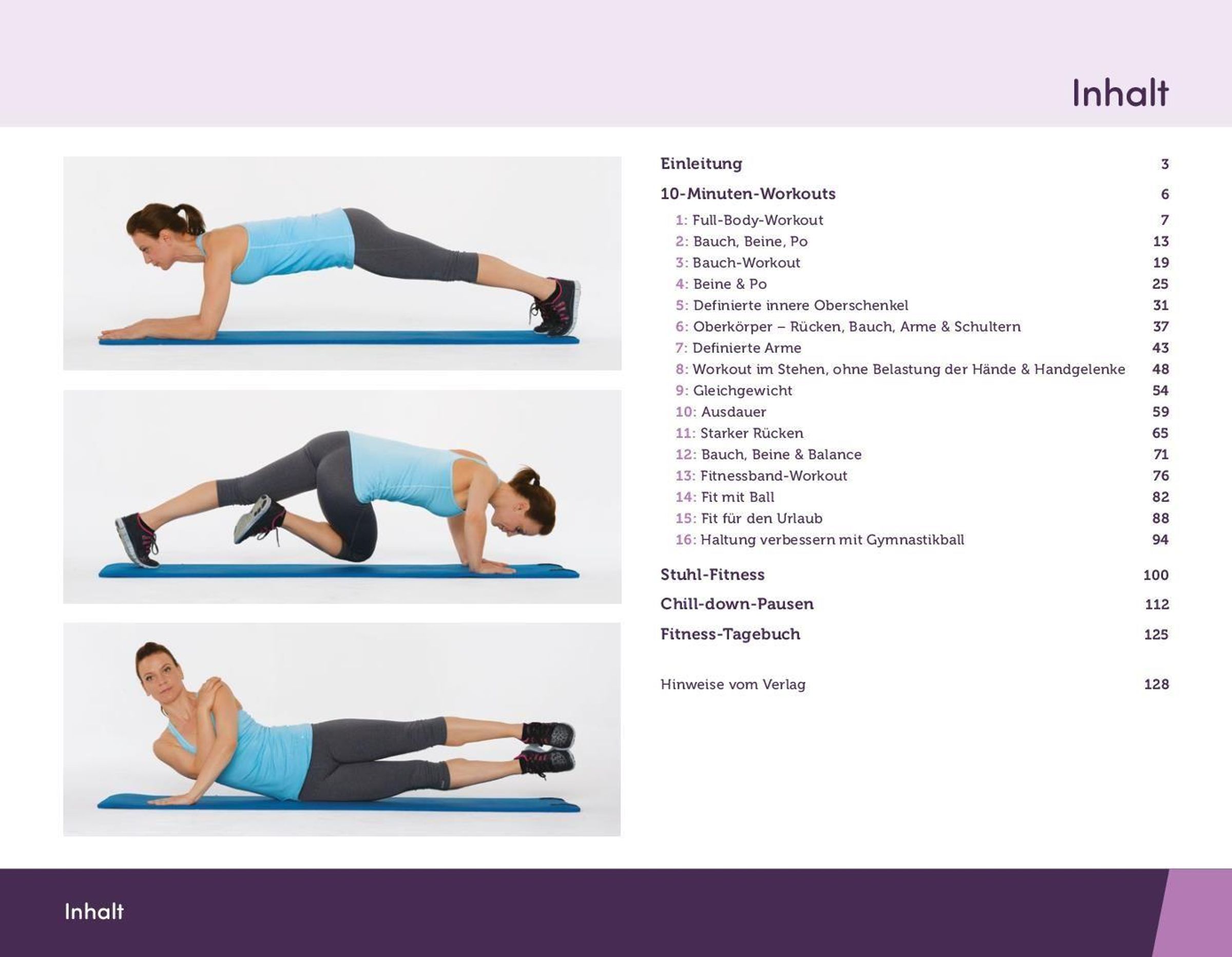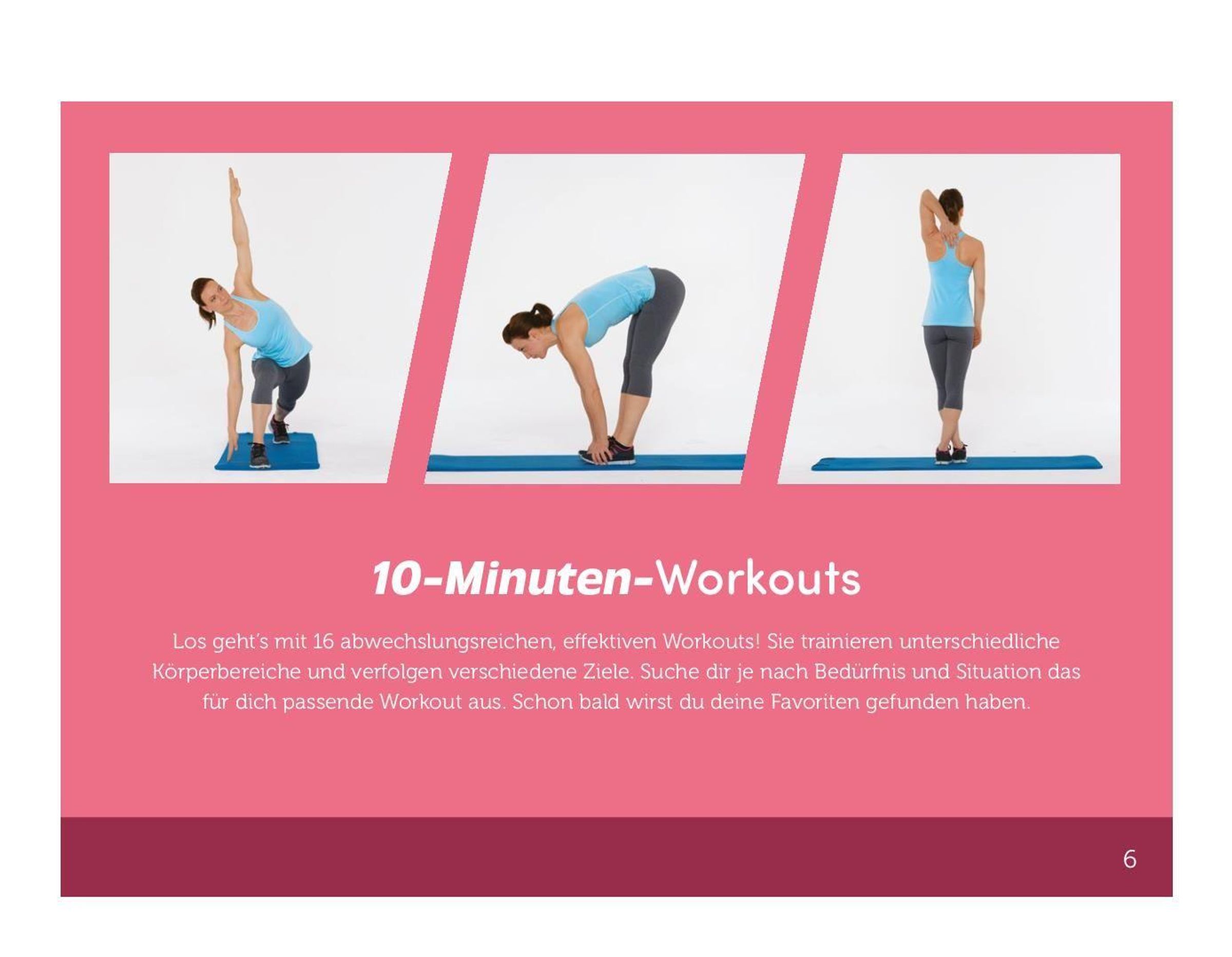 16 von Fitness-Trainerinnen ausgearbeitete 10-Minuten-Workouts mit unterschiedlichen Fitness-Zielen.