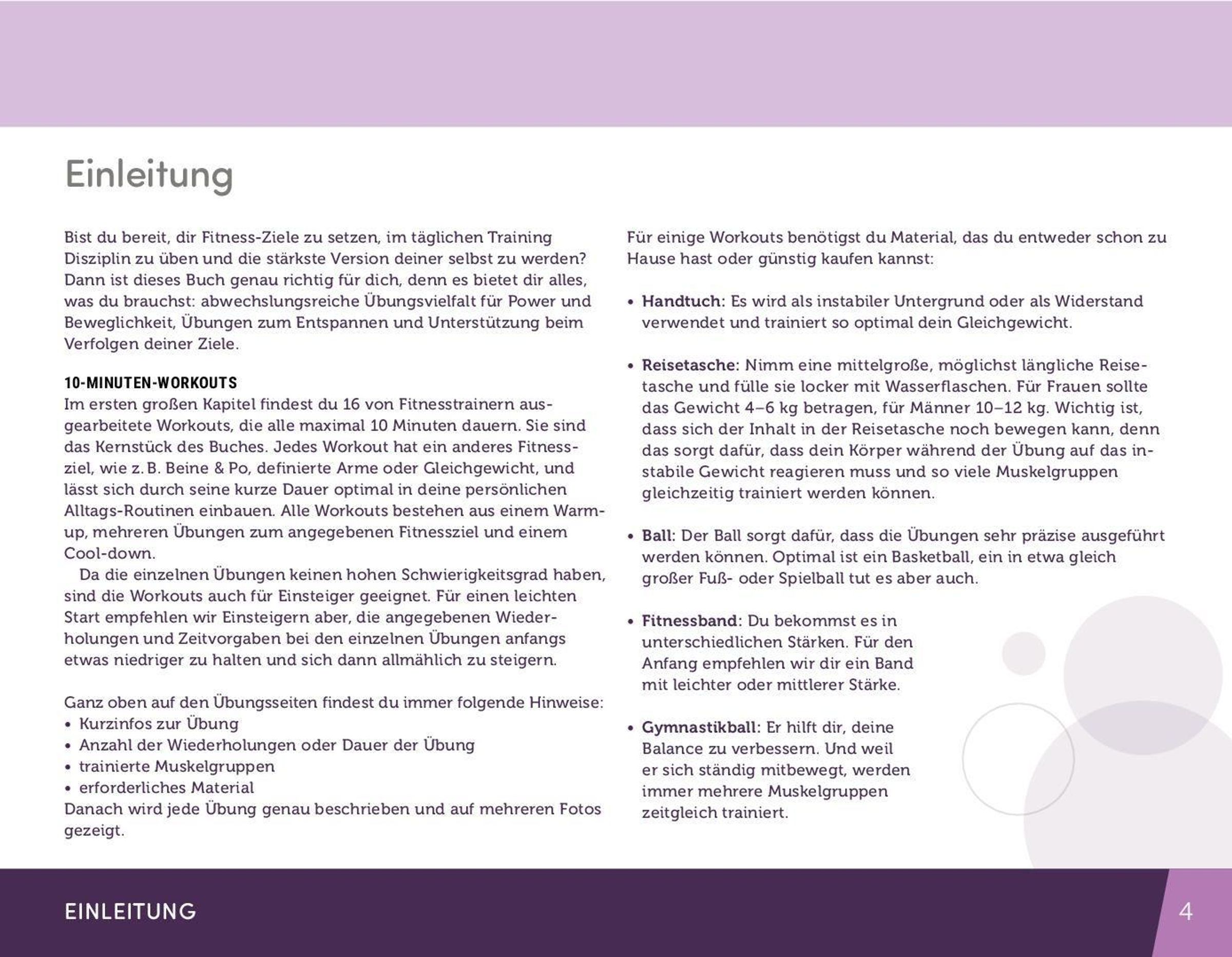 Jede Übung wird Step-by-Step genau beschrieben und auf mehreren Fotos gezeigt. Die Workouts lassen sich optimal in deine persönlichen Alltags-Toutinen einbauen und sind auch für Einsteiger bestens geeignet.