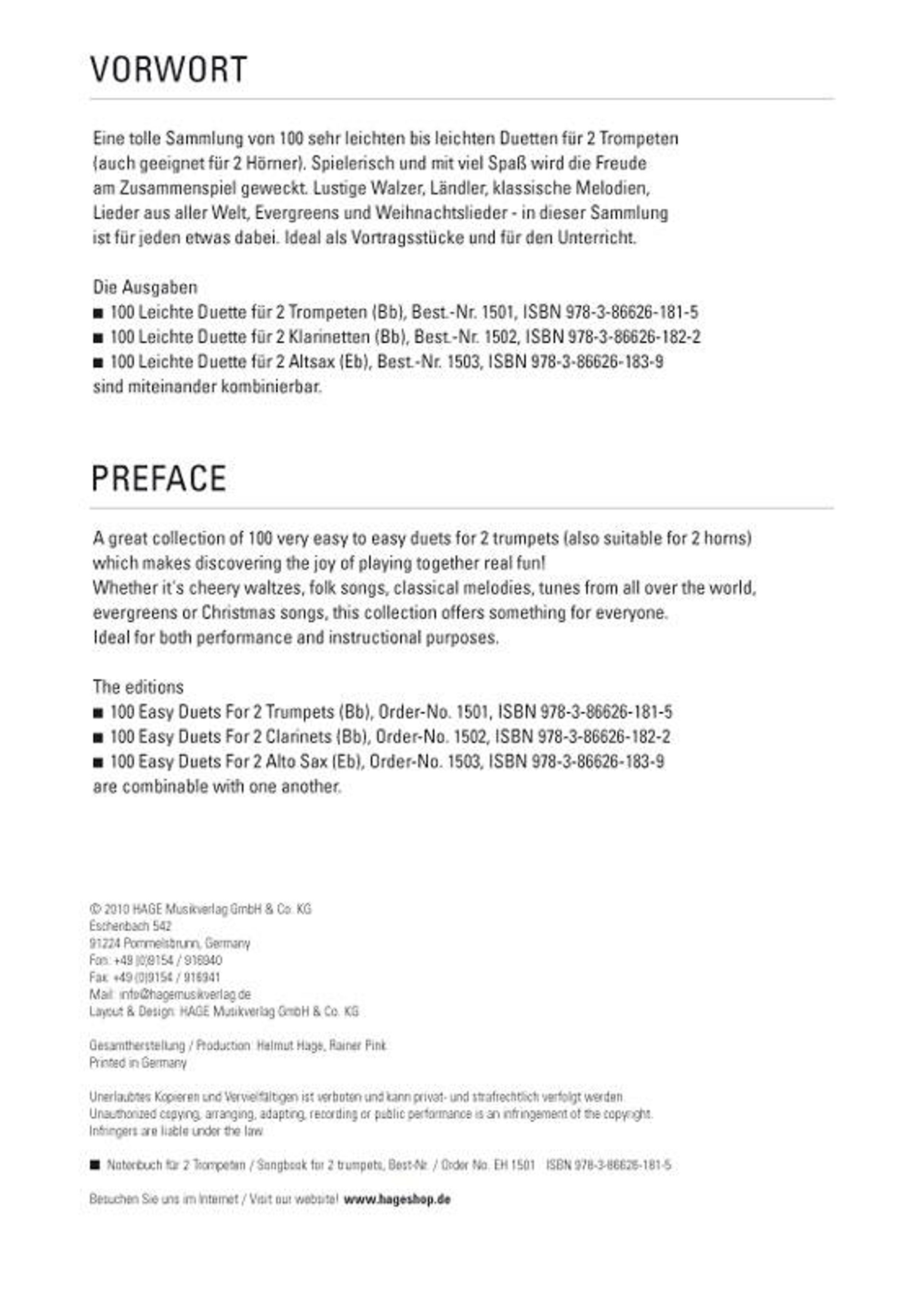 100 leichte Duette für 2 Trompeten, Kartoniert / Broschiert