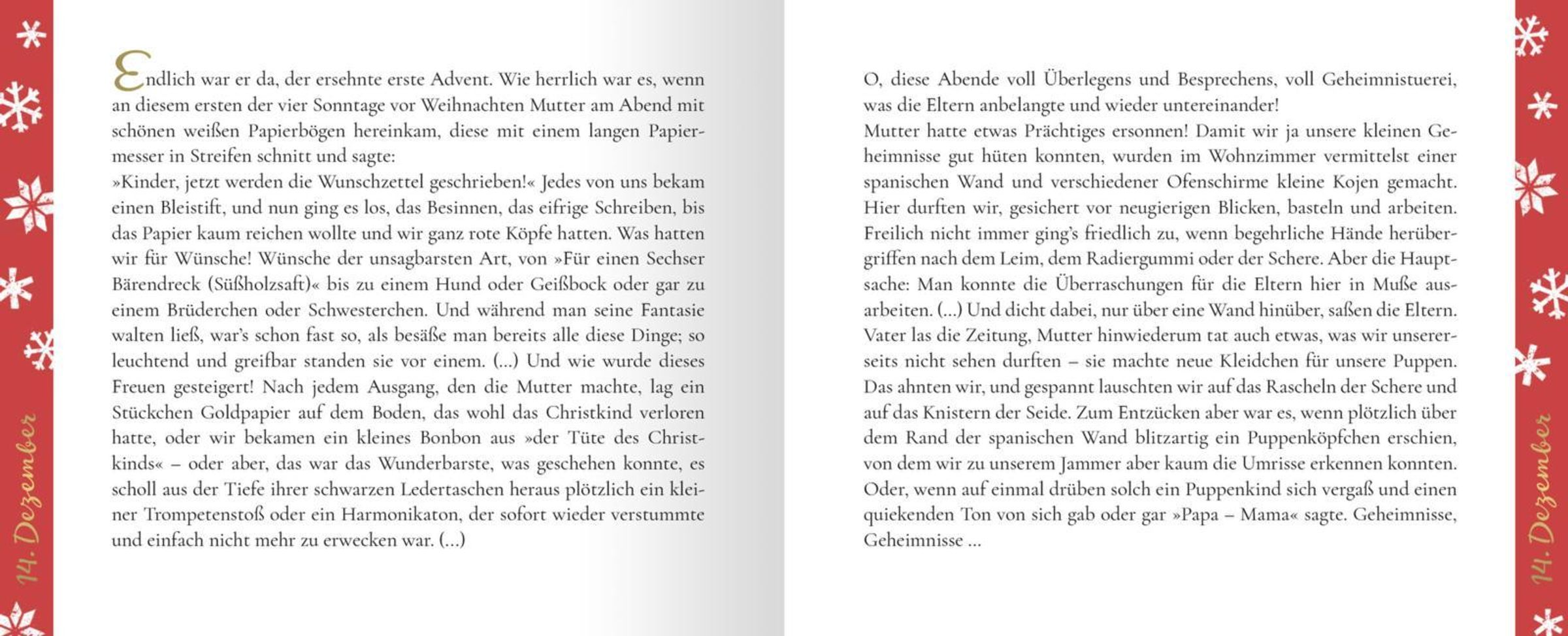 . Adventskalender mit seitlich geschlossenen Seiten, die mühelos aufgetrennt oder aufgeschnitten werden können