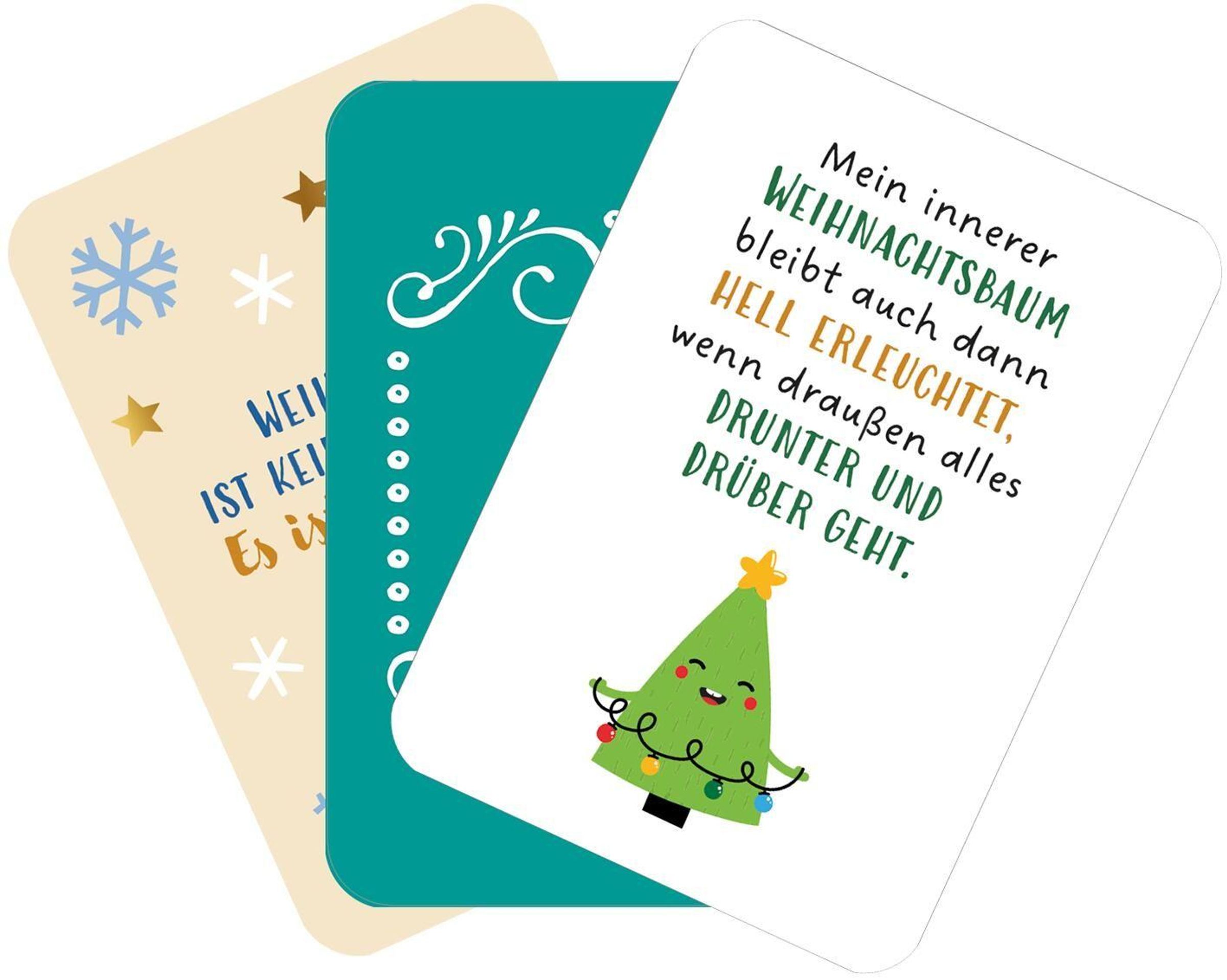 - **Achtsamkeit mit Augenzwinkern:**24 Karten mit humorvollen Sprüchen, witzigen Impulsen und entspannenden Mini-Übungen - für mehr Leichtigkeit im Advent
