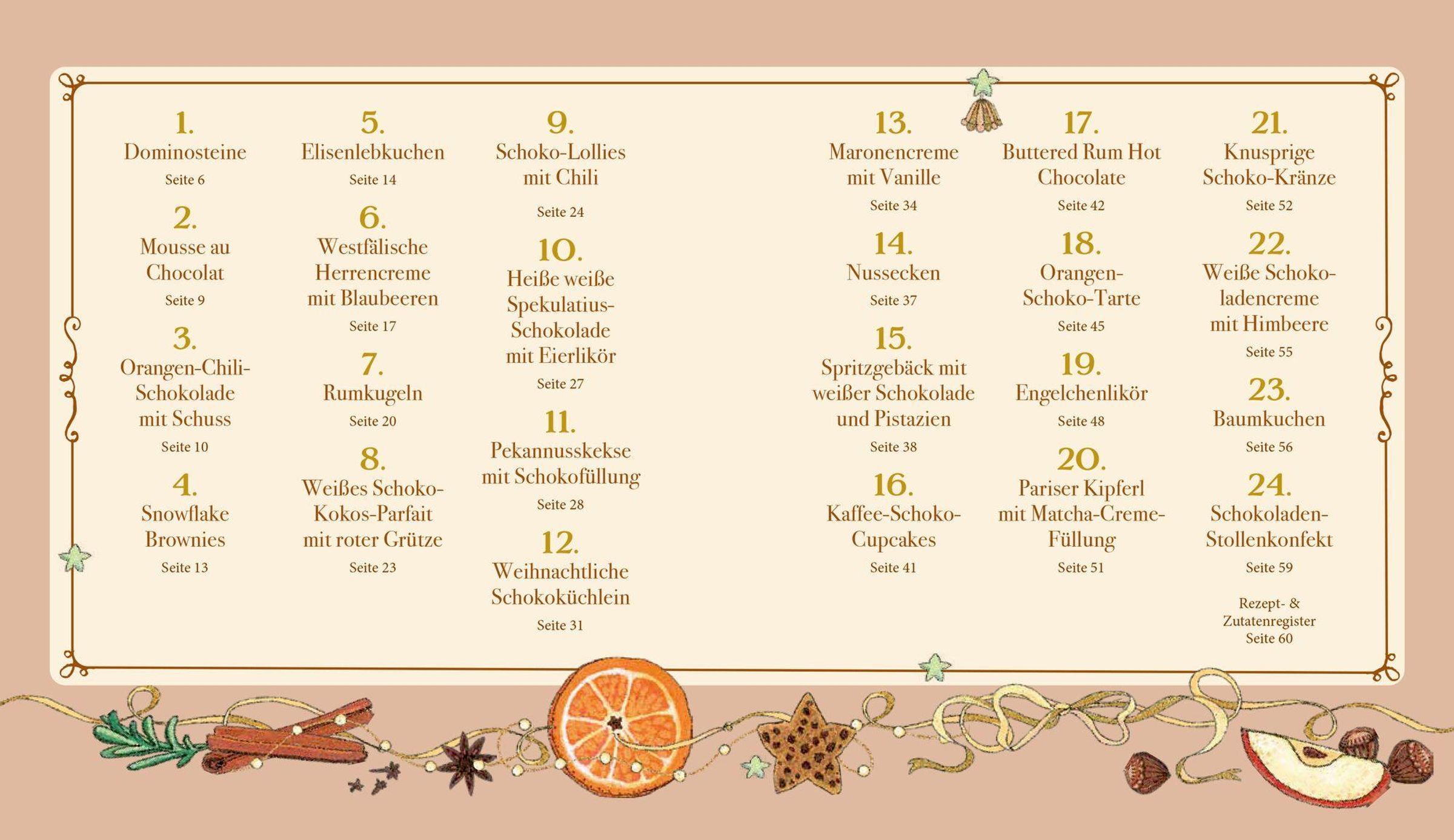 Dieser kulinarische Adventskalender ist ein zartschmelzender Countdown bis Weihnachten: Jeden Tag wartet ein neues Rezept mit der süßen Kostbarkeit- knusprige Plätzchen, cremige Desserts und wärmende Getränke feiern die Schokoladenseiten des Winters. Ein besonderes Geschenk für alle, die den Dezember mit Genuss, Geborgenheit und einem Hauch Magie erleben möchten.