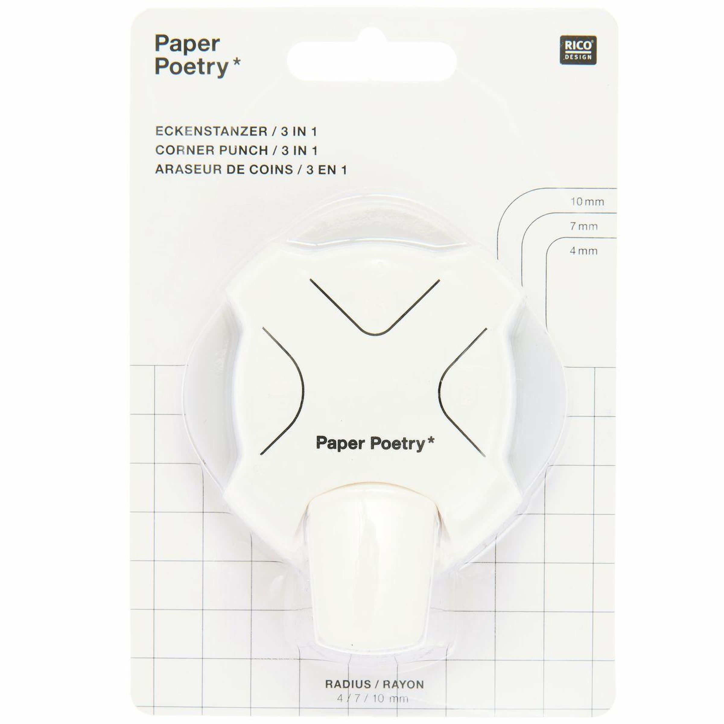 Der Eckenstanzer 3-in-1 ist für drei unterschiedliche Eckenradien ausgelegt und stanzt wahlweise R4, R7 oder R10. Auf der Oberseite erleichtern vorgezeichnete Linien die Orientierung und zeigen die jeweilige Größe der Radien an. Das Produkt eignet sich für den Einsatz im Büro sowie im privaten Umfeld und wird häufig für Karten und Bastelarbeiten verwendet. Eine integrierte Anti-Rutsch-Matte sorgt für einen sicheren Stand während der Anwendung.