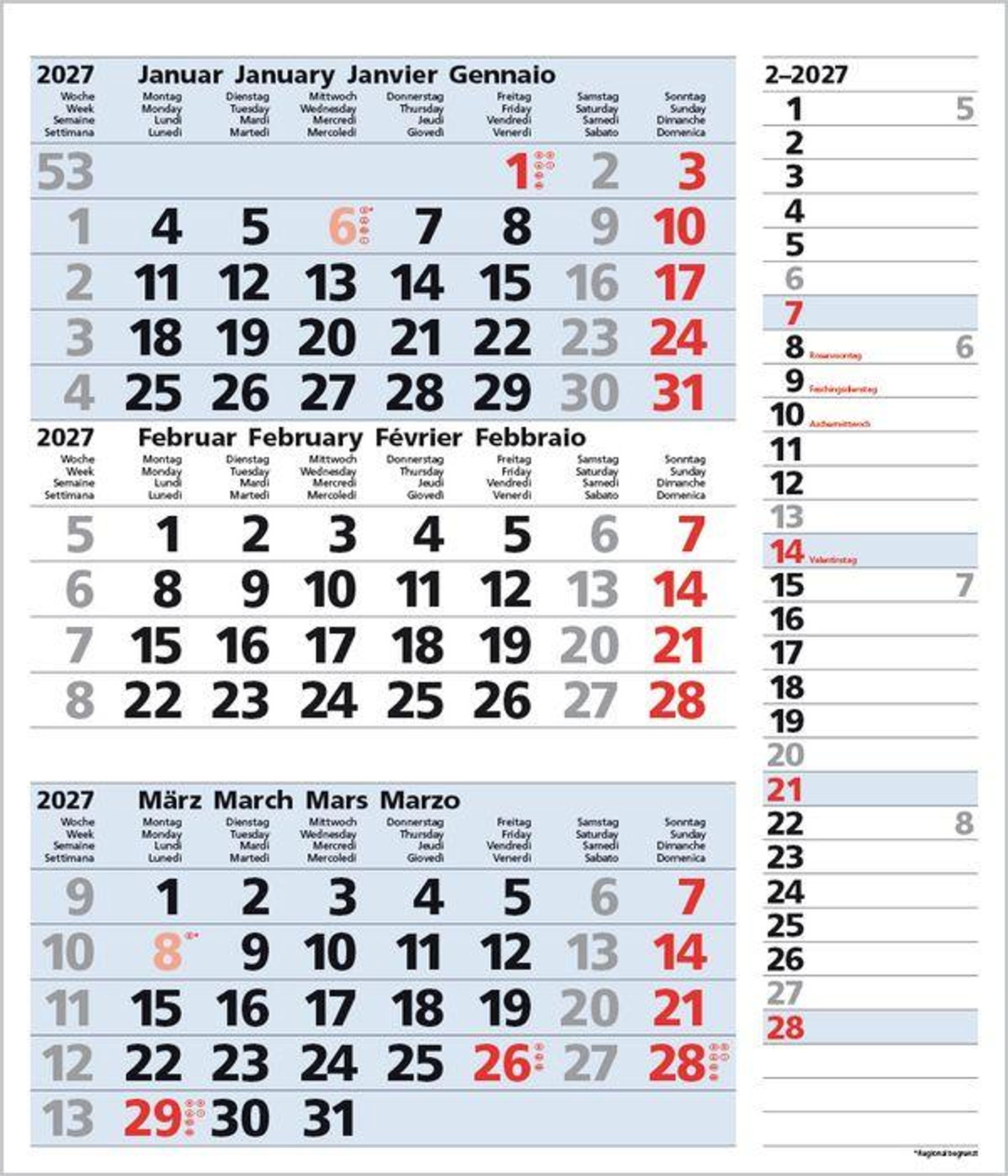 3-Monats-Planer Combi Blau 2027 (Kalender)