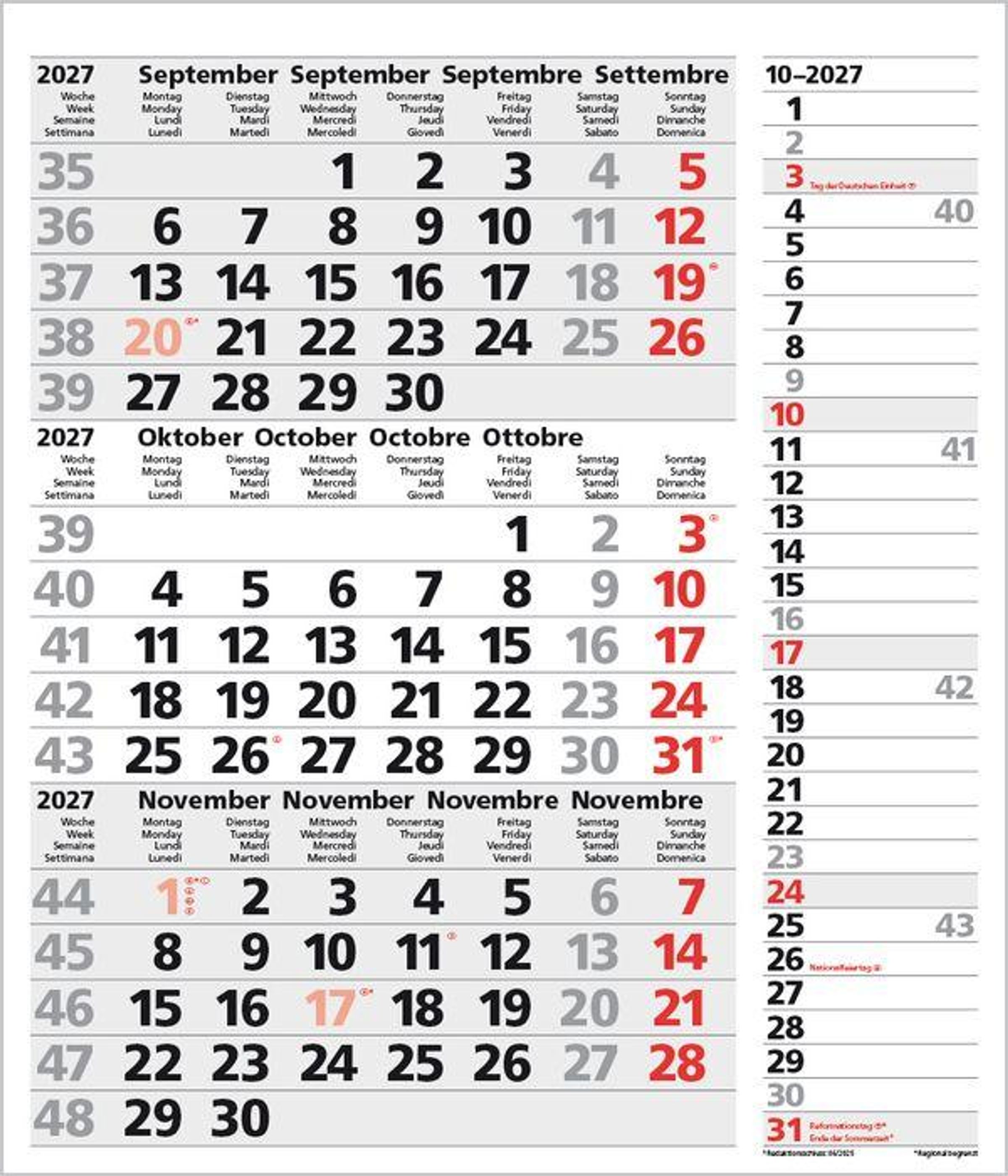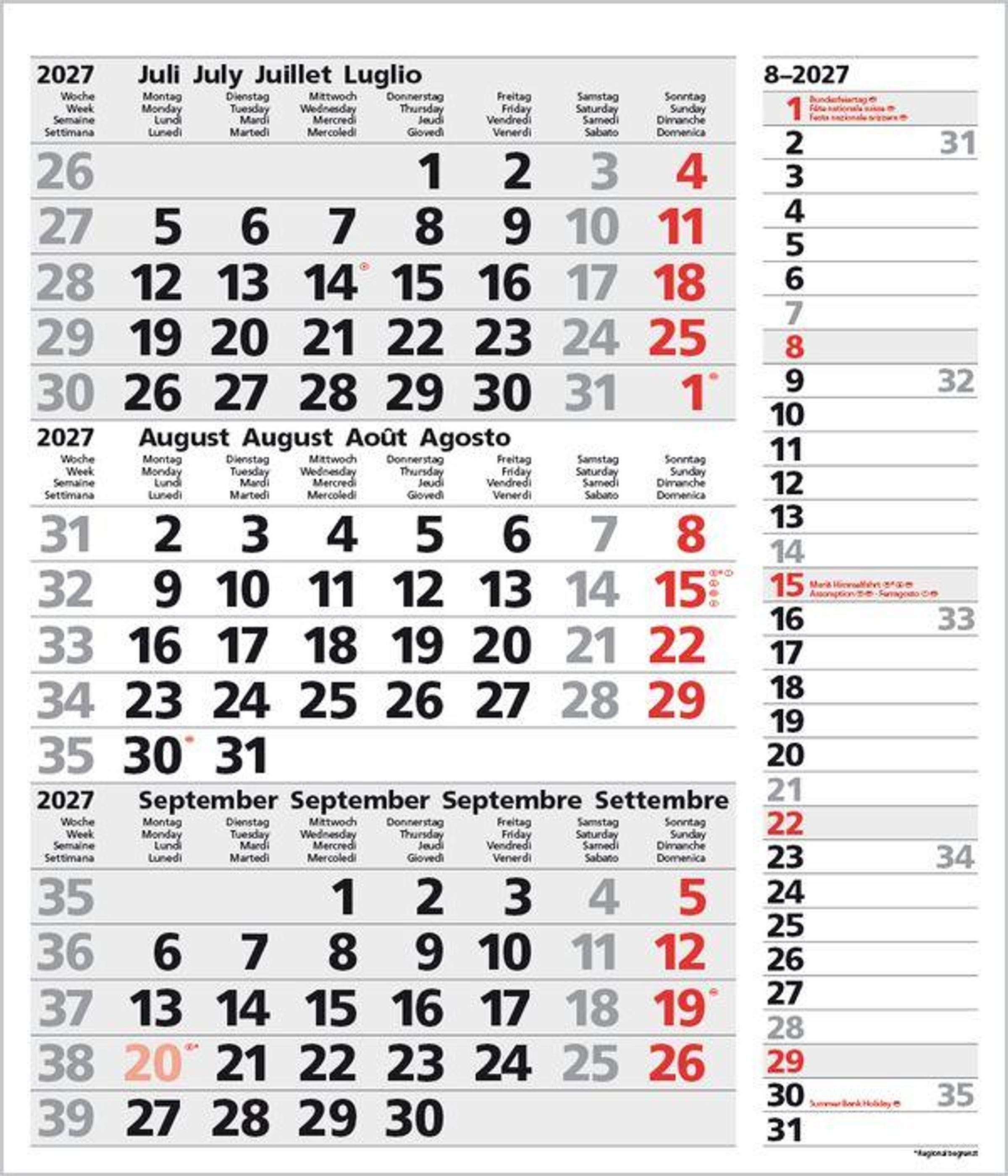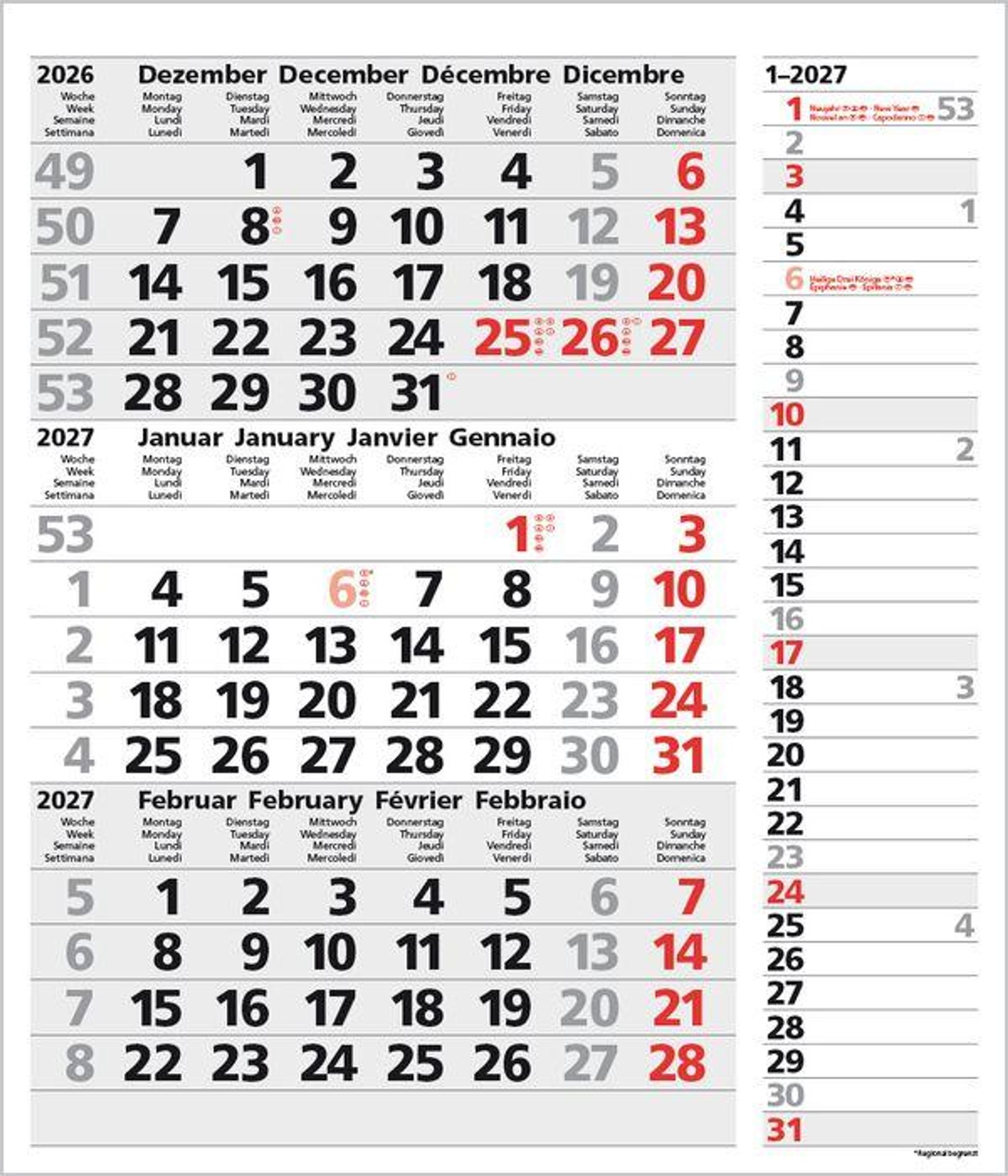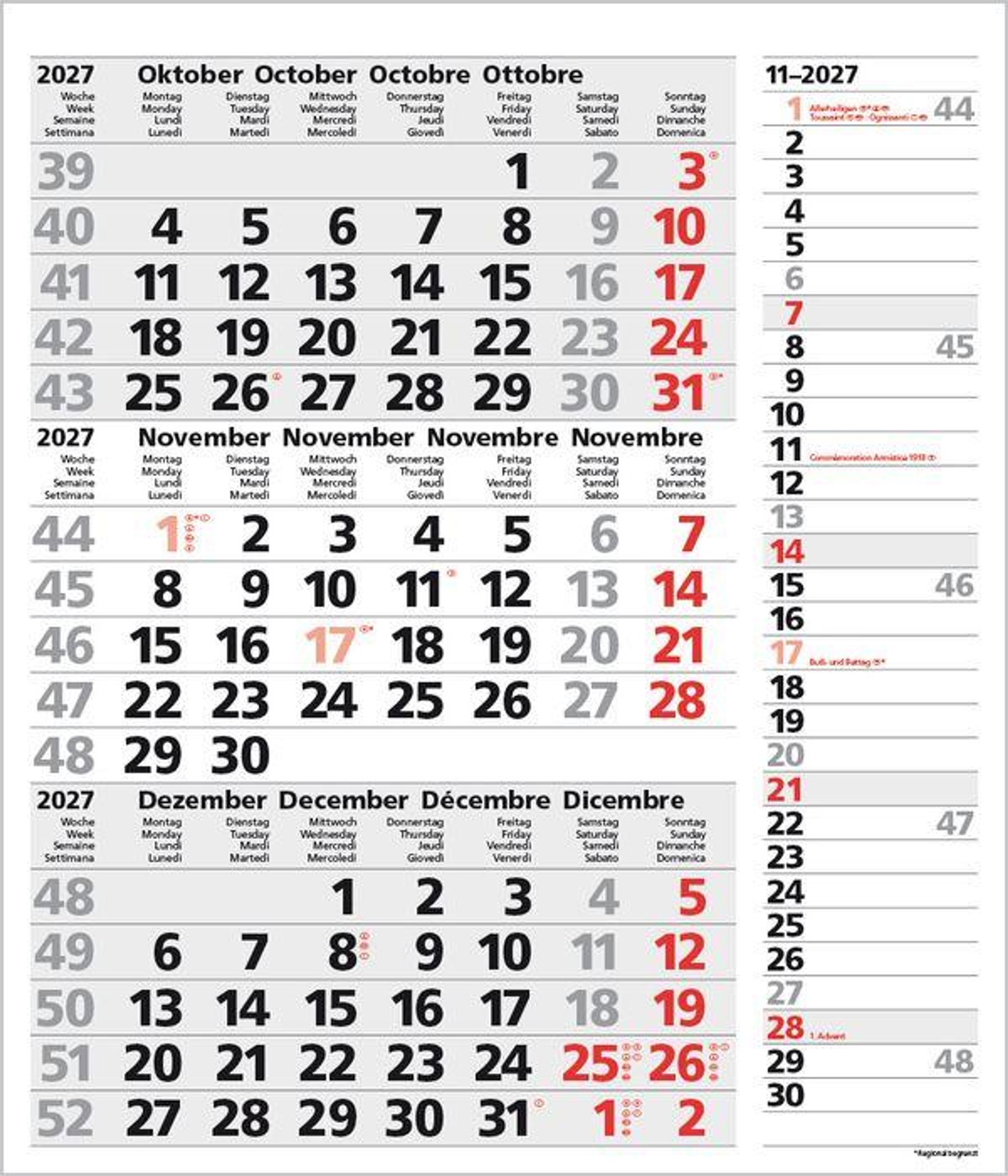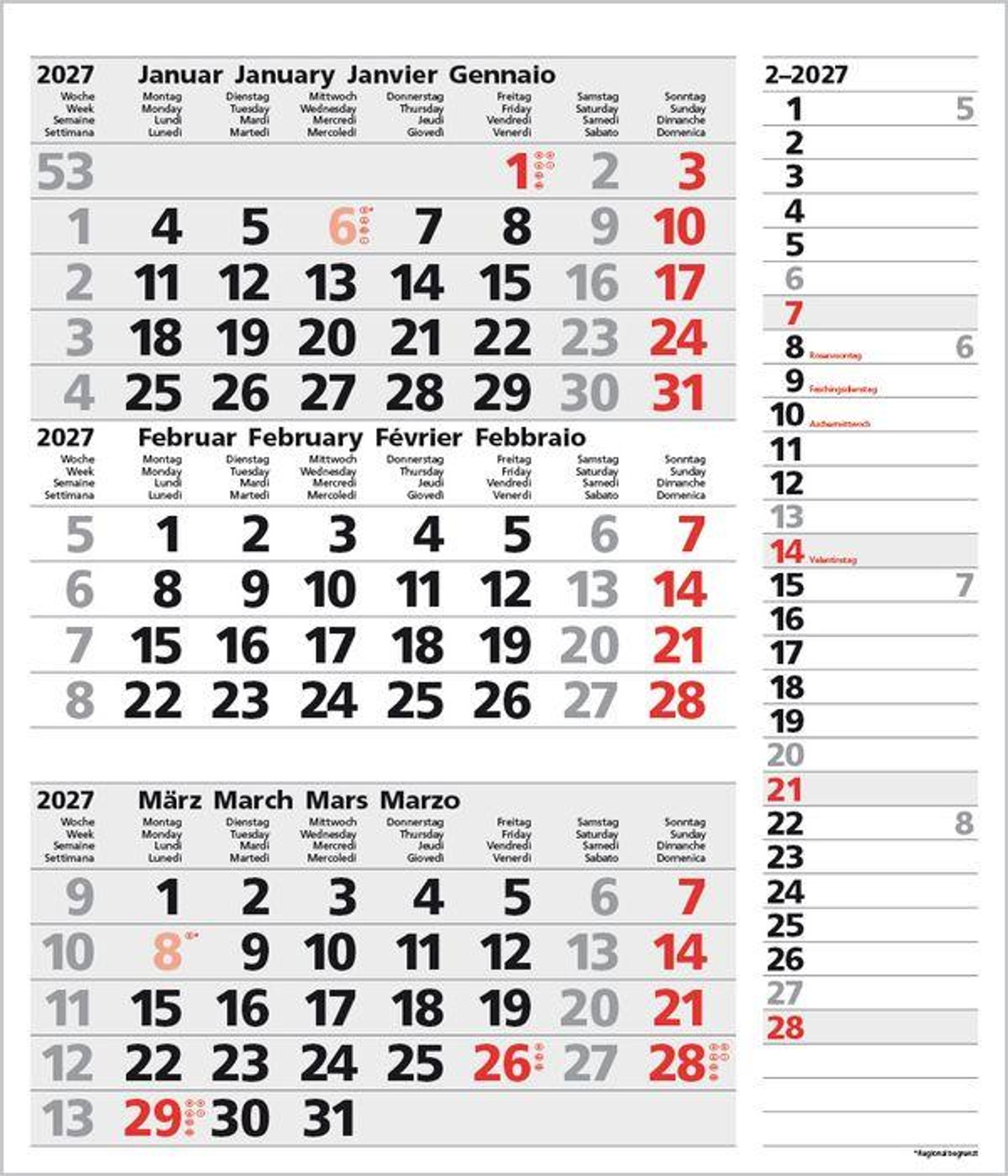 3-Monats-Planer Combi Grau 2027 (Kalender)