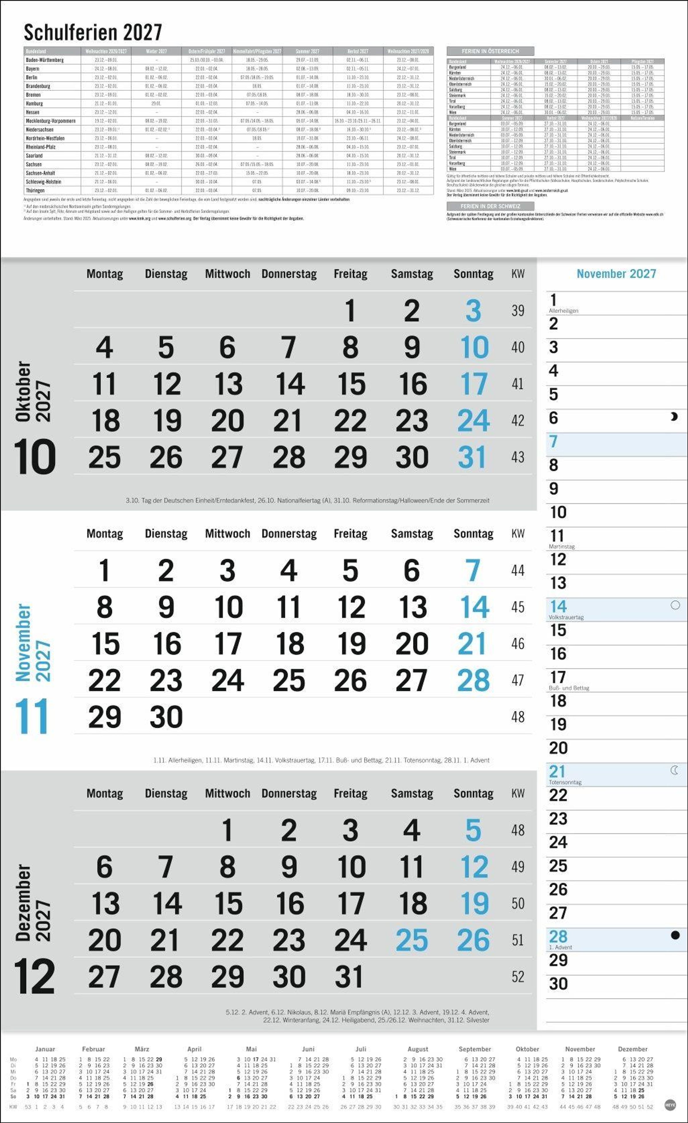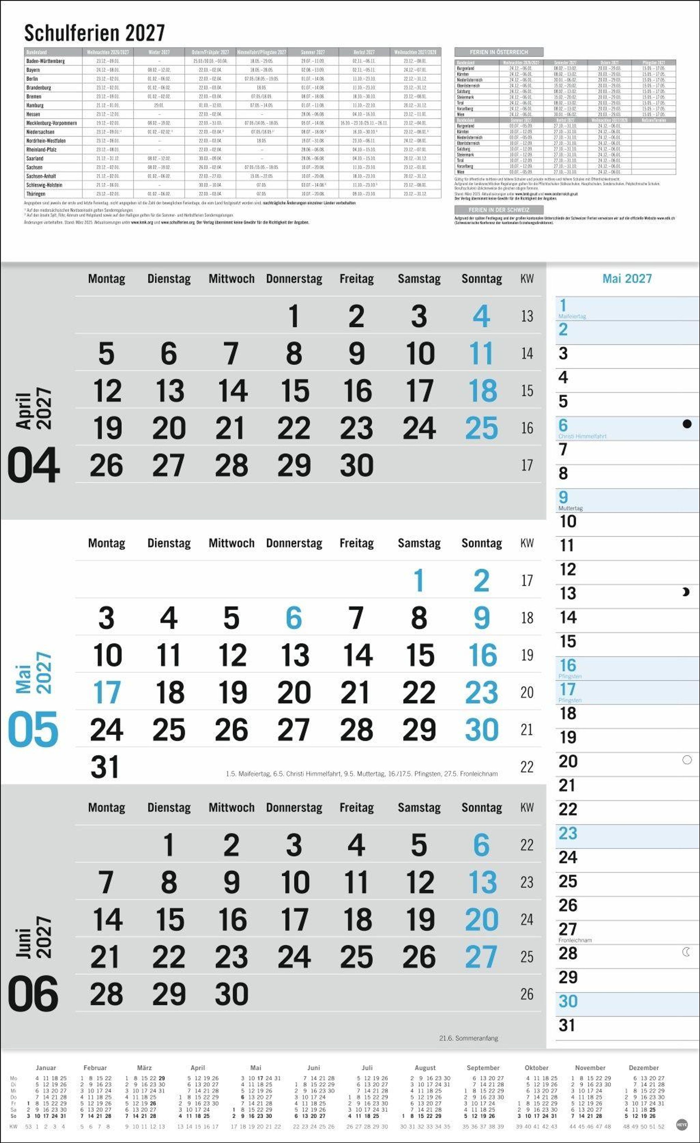 - 3-/4-Monatsplaner Kalender Heye , Bürokalender Heye