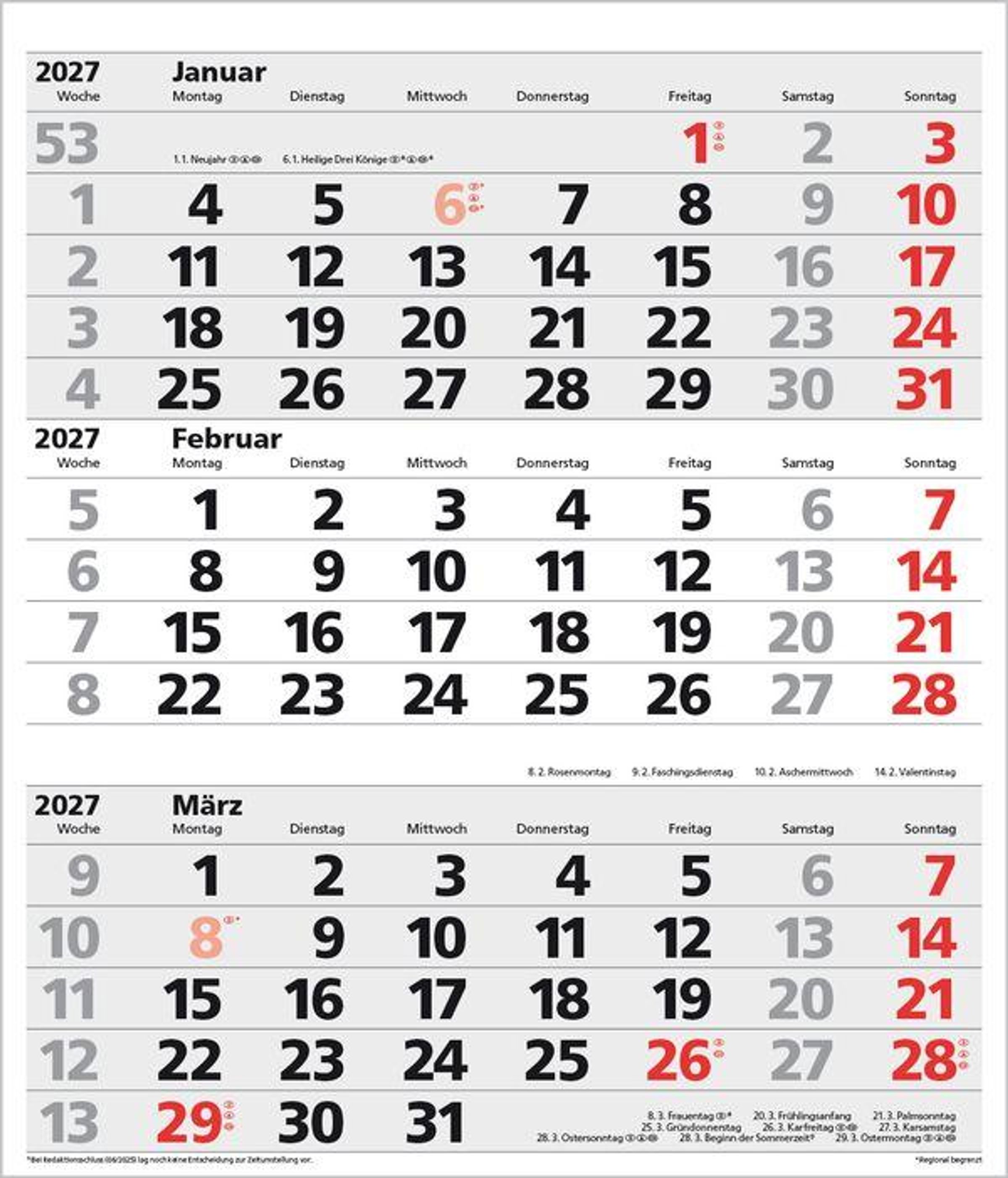 3-Monats-Planer XL Comfort 2027 (Kalender)