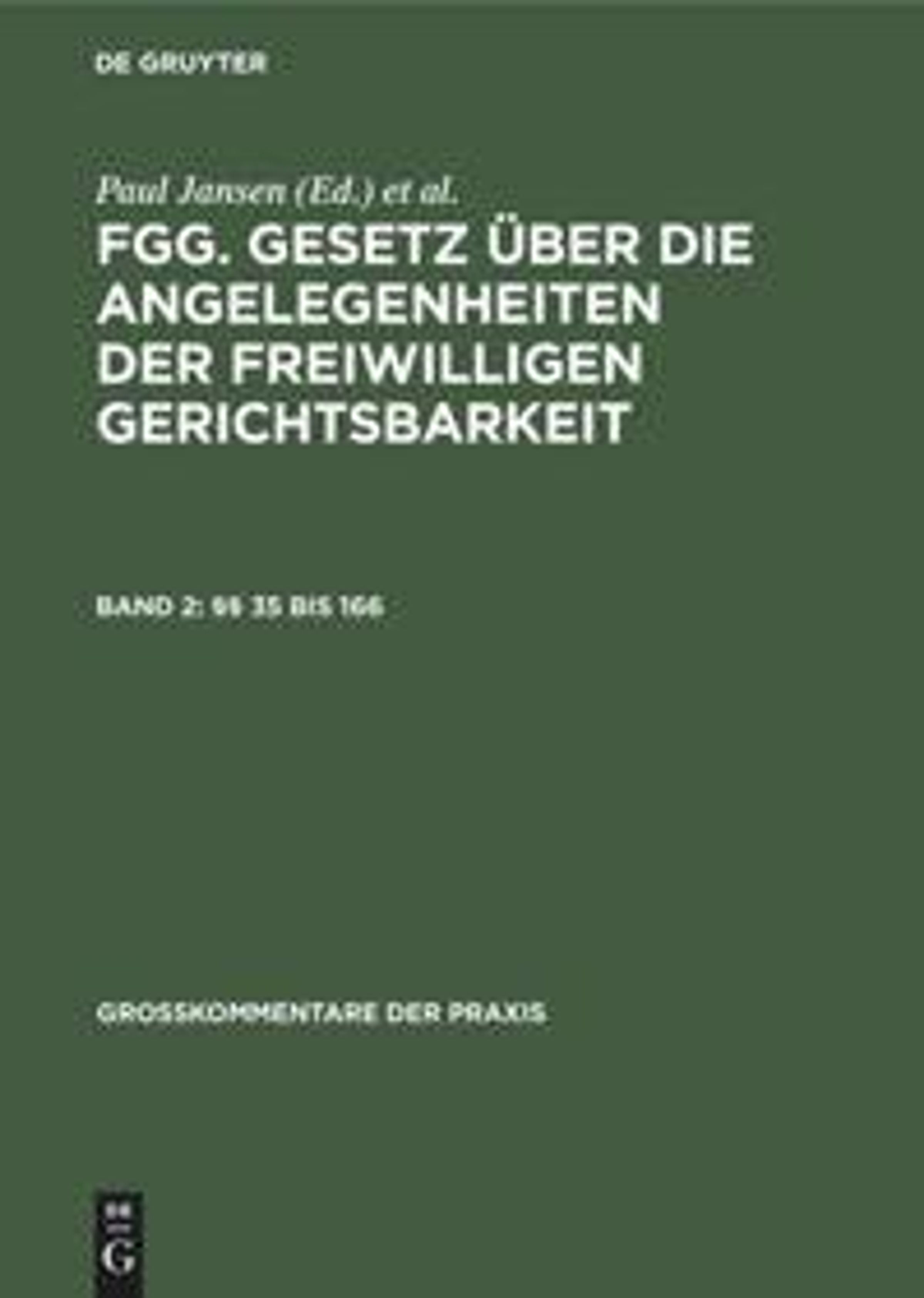 - FGG - Gesetz über die Angelegenheiten der freiwilligen Gerichtsbarkeit mit Nebengesetzen und bundes- und landesrechtlichen Ergänzungs und Ausführungsvorschriften. Kommentar, Band 2: Zweiter bis neunter Abschnitt