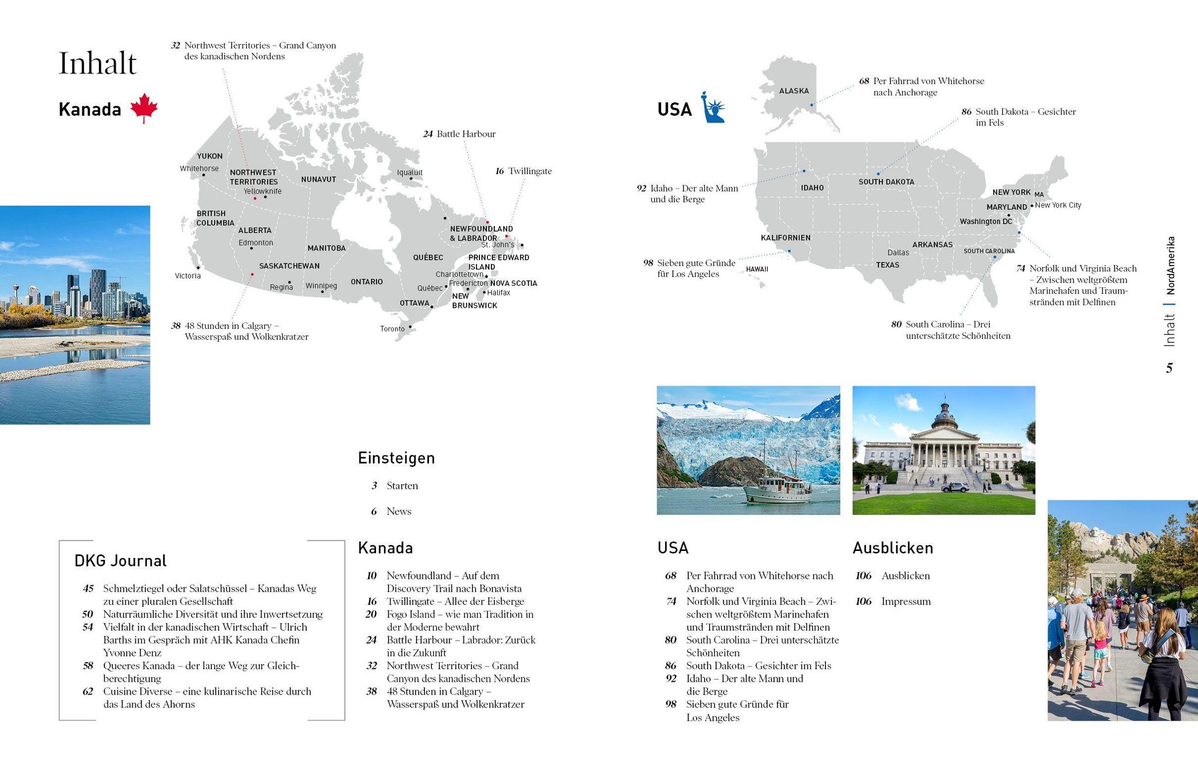 Dass man Nordamerika auch auf zwei nicht motorisierten Rädern genießen kann, zeigt Reinhard Pantke im zweiten Teil seine Reportage: Jetzt nimmt er uns mit auf die Etappe zwischen Whitehorse im Yukon Territory und Anchorage in Alaska. Virginias Vielfalt lässt sich gut in Norfolk und Virginia Beach erleben: zwischen der bekannten, weitläufigen Marinebasis und Delfinen bei einer Kajaktour. Zwei Bundesstaaten weiter, in South Carolina, erwarten drei unterschätzte Schönheiten die Urlauber: die Hauptstadt Columbia, das nahe Camden mit Kleinstadtflair und Historie sowie der Congaree National Park. Mount Rushmore ist eine der ganz großen Attraktionen des Landes. Doch es gibt in South Dakota noch weitere "Gesichter im Fels" wie Sandra Wickert berichtet. In Idaho wiederum war Ralf Johnen unterwegs zum letzten Wohnort von Ernest Hemingway. Und aus Los Angeles hat Christian Dose sieben Empfehlungen mitgebracht - passend dazu, dass die "Stadt der Engel" dieses Jahr bei der Fußball-WM und 2028 bei den Olympischen Spielen im Fokus steht.
