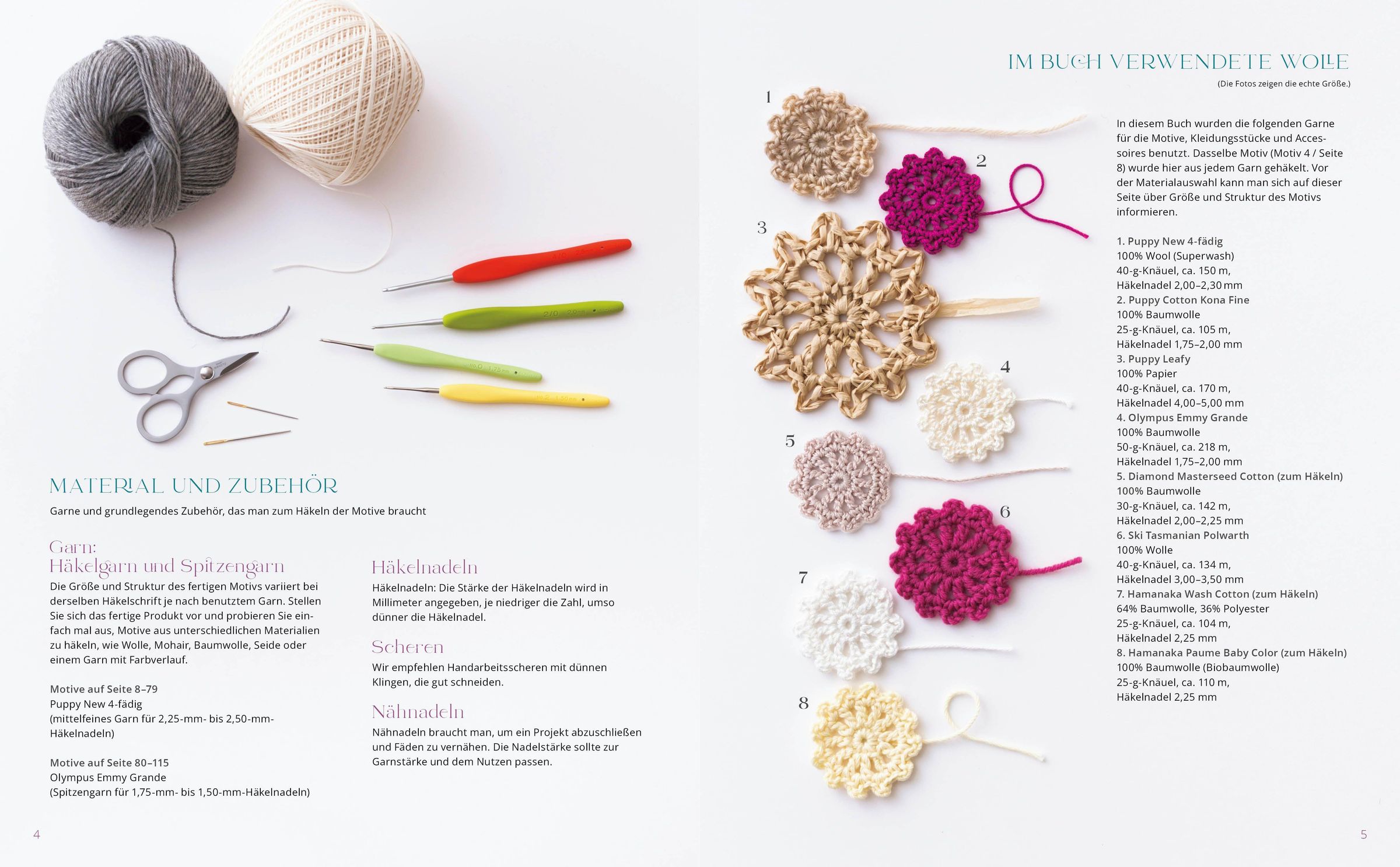 Techniken lernen und vertiefen: Popcorn-Stitch, Picots, Netzmuster, Y-Stitch oder Reliefmaschen werden Schritt für Schritt erklärt. Ein Technikteil vermittelt, wie Häkelschriften gelesen, Farben gewechselt und Motive zusammengefügt werden - auch mit dem 'Join-as-you-go'-Verfahren.