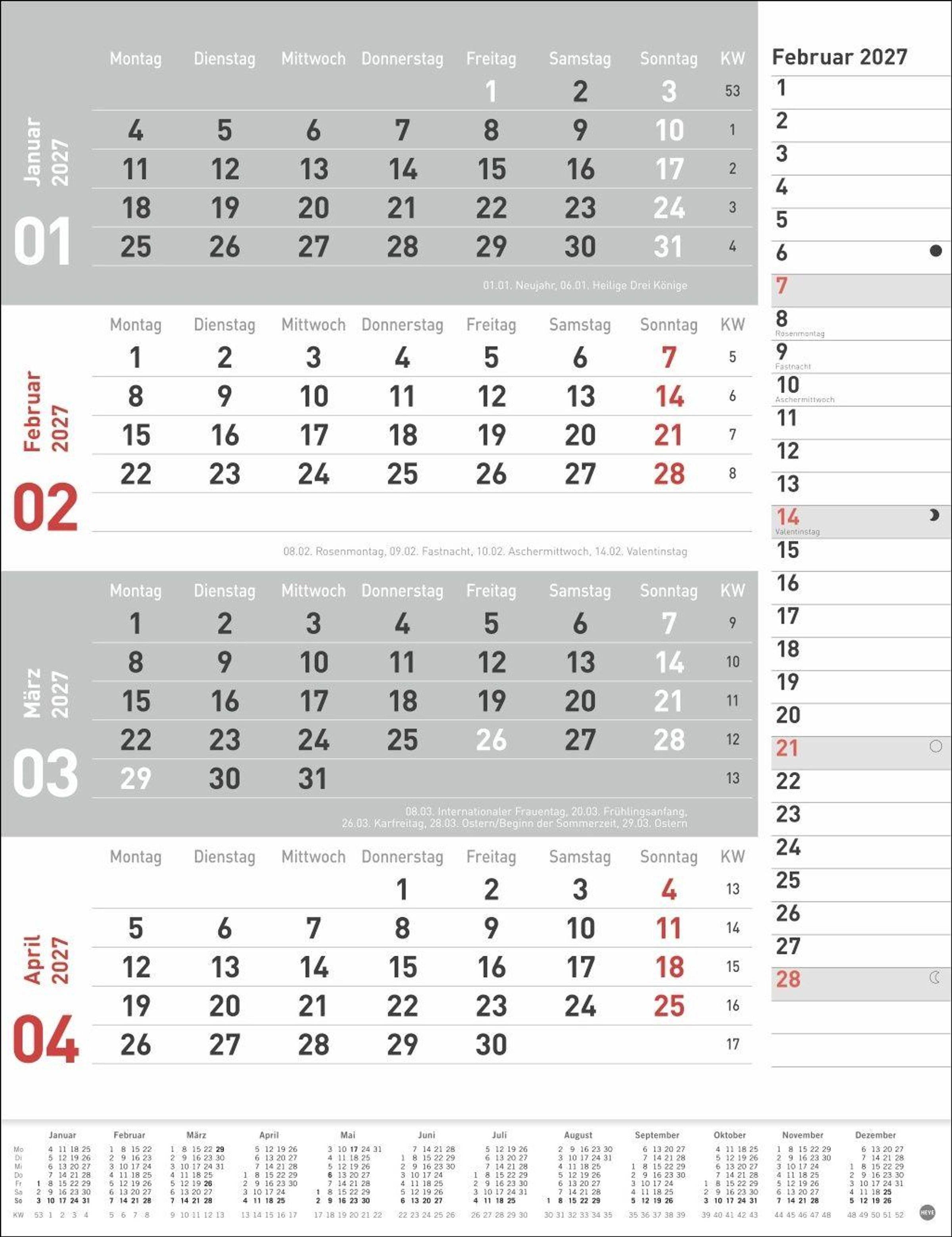 Alle Deadlines, Meetings und andere Termine im Blick mit diesem Büro-Wandkalender 2027 im Hochformat 30 x 39 cm