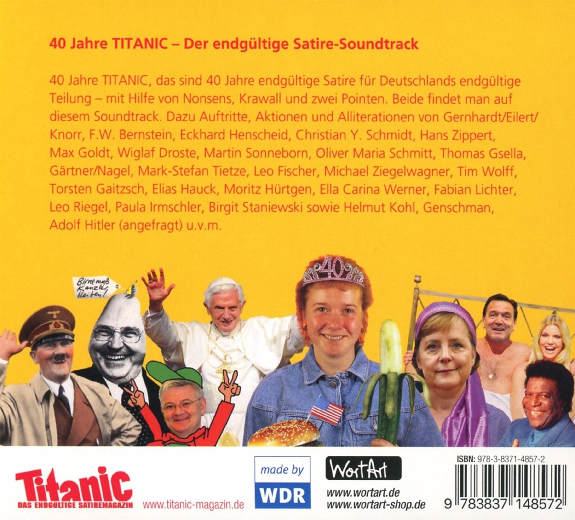 Seit 40 Jahren veröffentlicht das endgültige Satiremagazin "Titanic" ihre inzwischen 473te Heftauflage. Immer wieder schaffen es die Satirikerinnen und Satiriker für Aufsehen zu sorgen. Sei es schlicht im Rahmen des Heftmagazins oder auch mit abstrusen Wetten zur besten Sendezeit im deutschen Fernsehen. So hat es sogar zuletzt einer der Protagonisten der Zeitschrift in das europäische Parlament geschafft. Auf dieser CD Box sind die besten und lustigsten Texte, größtenteils von den Autoren selber vorgetragen, zusammengefasst.