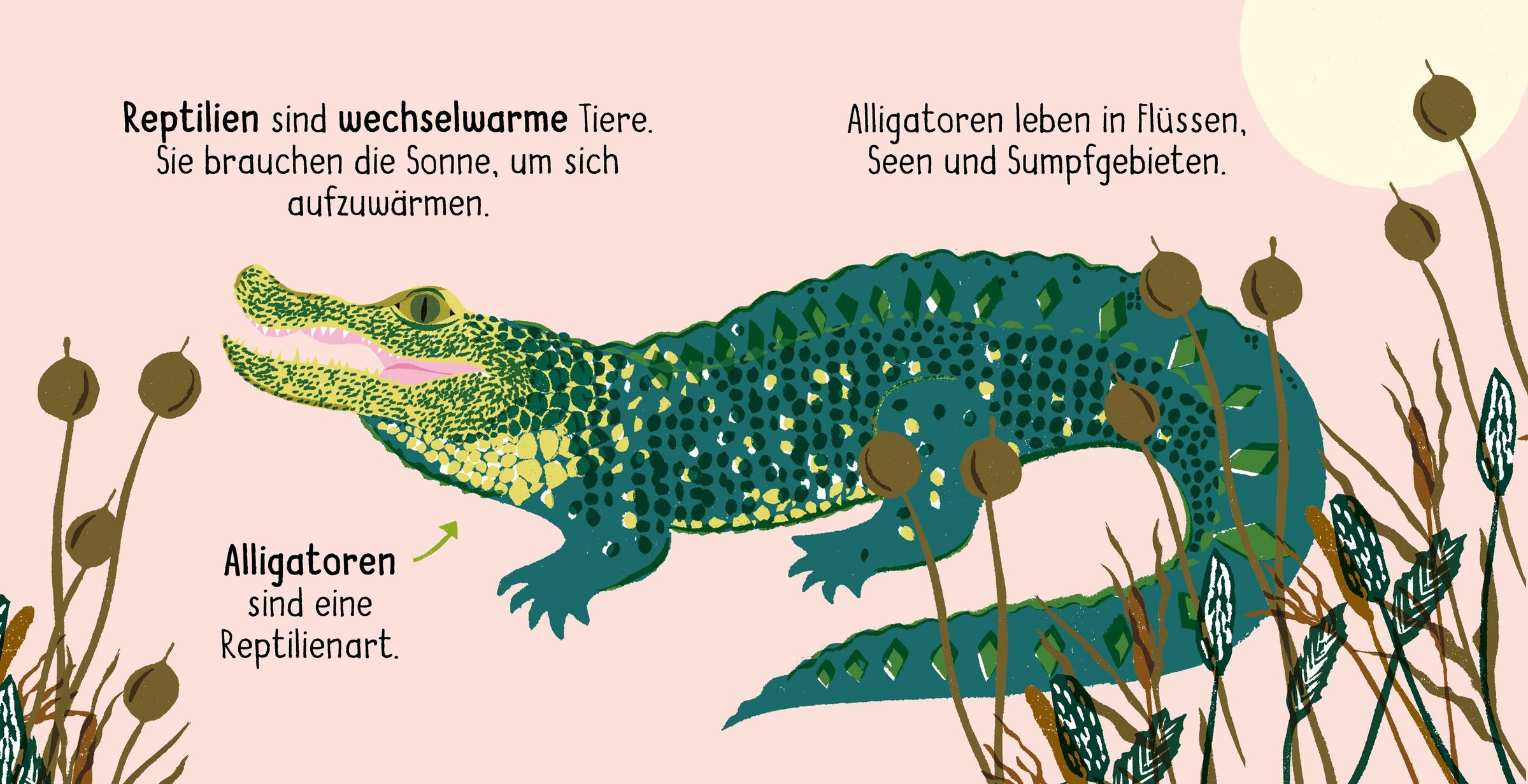 Entdecke Delfine, Gorillas, Alligatoren und viele mehr. Lerne außerdem spannende neue Wörter kennen, mit denen du diese Tiere genau beschreiben kannst! Dieses kleine Buch über Tiere ist Teil einer Reihe, welche einen ersten Wortschatz über die Natur vermitteln möchte. Neben schon bekannten Wörtern werden auch neue, herausfordernde Wörter präsentiert, z. B. Reptil , Spezies oder Primat . Einfache Erklärungen und die wunderschönen, leuchtend-bunten Illustrationen von Debbie Powell machen diese Wortschatzreise zu einem motivierenden Erlebnis.
