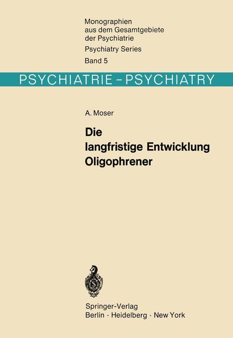 I. Literatur.- 1. Zum Stand der Oligophrenieforschung.- 2. Zum Begriff der Oligophrenie.- 3. Zur Alterspsychiatrie der Oligophrenen.- II. Fragestellungen und Zielsetzungen.- 1. Gesamtmaterial.- 2. Nachuntersuchtes Material.- 3. Besondere Fragestellungen.- III. Die Arbeitsmethode.- IV. Allgemeine Characteristica des Ausgangsmaterials.- 1. Auswahl.- 2. Verhältnis des ausgelesenen Materials zu der Gesamtpopulation Oligophrener des Kantons Waadt.- 3. Verhältnis der nachuntersuchten Patienten zum Ausgangsmaterial.- 4. Intelligenz.- 5. Geschlecht.- 6. Zivilstand.- 7. Muttersprache.- 8. Konfession.- 9. Herkunft.- 10. Beruf.- 11. Schulbildung.- 12. Militärdienst.- 13. Das Alter bei der Erstaufnahme.- 14. Zeitpunkt der ersten Aufnahme.- 15. Aufenthaltsdauer bei der ersten Hospitalisierung.- 16. Anzahl der Hospitalisierungen.- 17. Die Gesamtdauer aller Hospitalisierungen.- 18. Die familiäre Häufung psychiatrischer Erkrankungen.- V. Die Persönlichkeits- und Geistesstörungen im Ausgangsmaterial und ihre Entwicklung bei den nachuntersuchten Patienten.- 1. Literatur.- 2. Die Ergebnisse unserer eigenen Untersuchungen.- a) Reaktive und psychopathische Verhaltens- und Charakterstörungen.- b) Depressionen.- c) Manisch-depressive Erkrankungen.- d) Schizophrenie bei Oligophrenie.- e) Psychische Störungen in Zusammenhang mit Körperkrankheiten.- f) Alkoholismus und andere Toxicomanien.- g) Zur Ätiologie des Schwachsinns unserer Patienten.- VI. Kriminalität.- VII. Zur Mortalität der Oligophrenen.- VIII. Die Todesursachen.- IX. Nachuntersuchung.- 1. Dauer der Katamnesen.- 2. Das Alter bei der katamnestischen Untersuchung.- 3. Soziales Milieu.- 4. Berufsarbeit bei der Nachuntersuchung.- 5. Die Berufstätigkeit im Verlaufe des Lebens.- 6. Physischer Gesundheitszustand.- 7. Das psychoorganische Syndrom.- 8. Das Auftreten neuer Symptome im Alter.- 9. Die soziale Anpassung.- 10. Statistische Zusammenhänge zwischen der sozialen Anpassung im Alter und verschiedenen Variablen.- 11. Subjektive Einstellung der Patienten zu verschiedenen Problemen des Alters.- 12. Subjektive Eindrücke des Untersuchers.- Zusammenfassung.- Summary.
