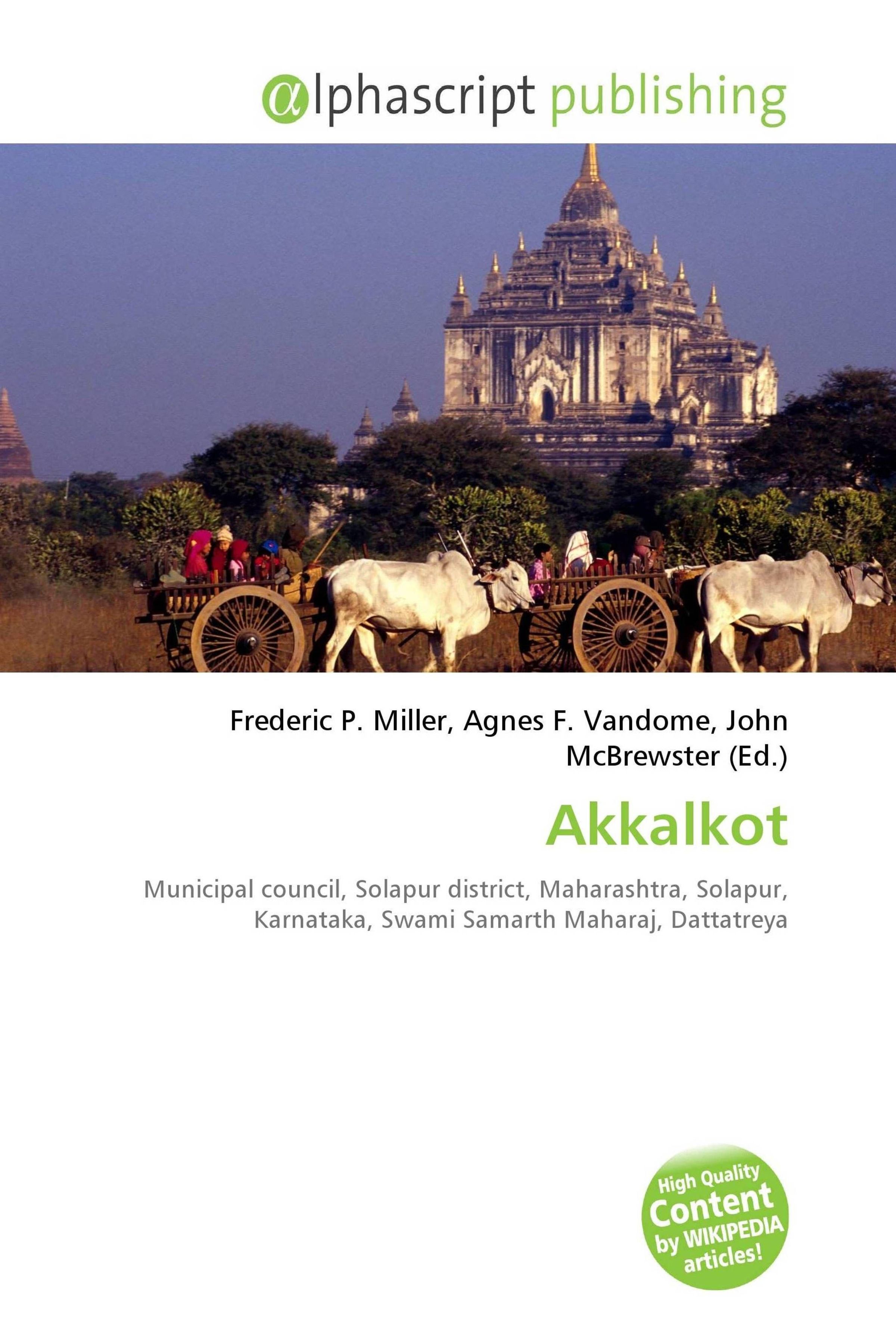 Please note that the content of this book primarily consists of articles available from Wikipedia or other free sources online. Akkalkot is a city and a municipal council in Solapur district in the Indian state of Maharashtra, situated 40 km southeast of Solapur near the state border with Karnataka. Akkalkot is home to Shri Swami Samarth Maharaj, a saint in 19th century who was believed to be an incarnation of God Dattatreya by his devotees.
