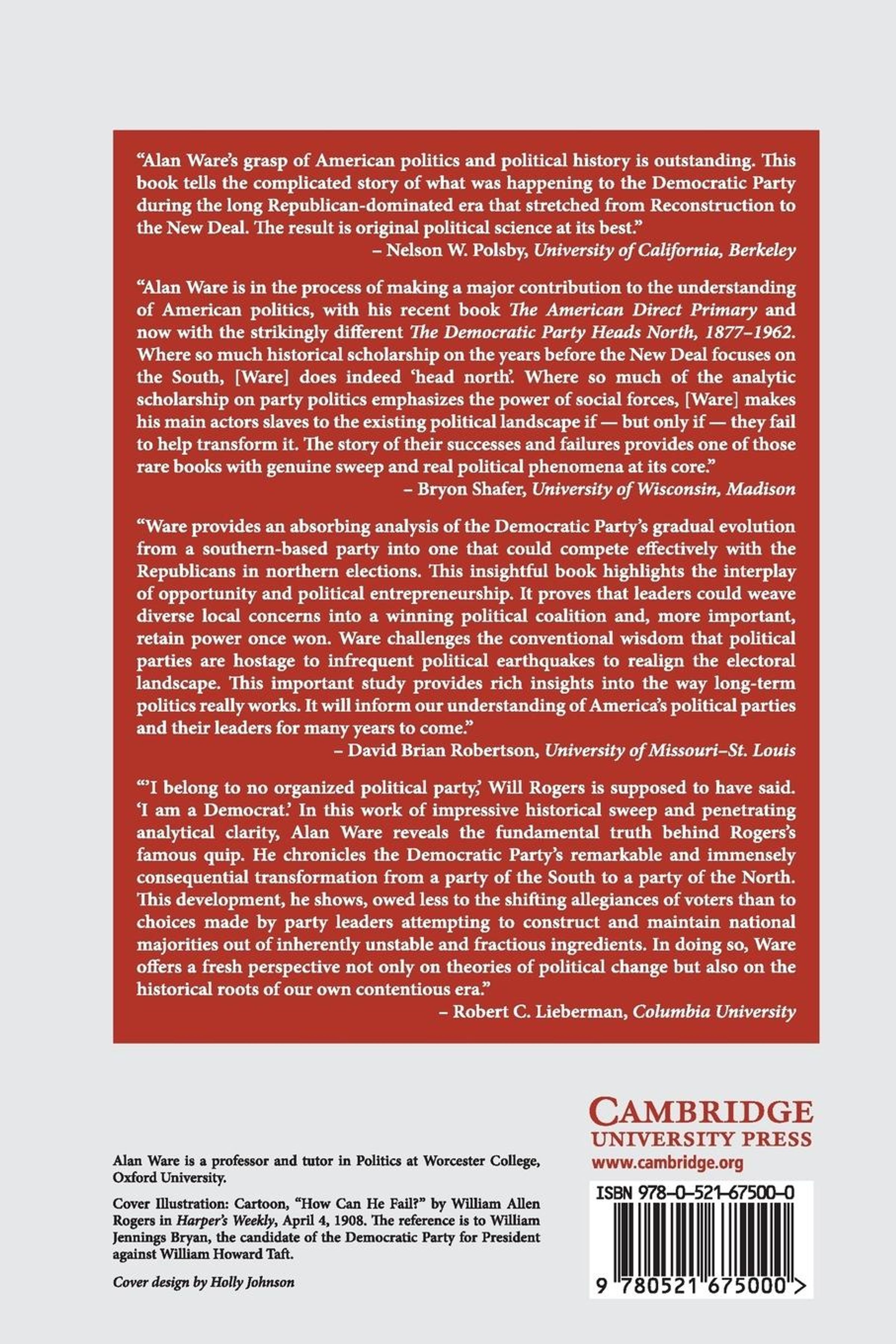 This book provides a wholly new analysis of the American party system. It examines how the Democratic party tried to construct a winning electoral coalition between 1877 and 1962. It argues that there was a much greater continuity in the elements of the Democratic coalition from one era to another than is usually believed. Neither the economic depression of the early 1890s nor the New Deal programmes of the 1930s had the effects on the party system that they are supposed to have had.