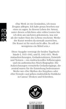 Diese Ausgabe vereinigt die beiden Tagebuchbände I, 1935 - 1942 und II, 1942 - 1951. Werkstattaufzeichnungen, Gedankenskizzen, Entwürfe und Notizen - ein eindrucksvolles Selbstzeugnis und ein authentisches Stück Biographie. Die Aufzeichnungen vermitteln Gedankengänge, die zentral waren für die Entstehung bedeutsamer Werke wie Der Mythos des Sisyphos oder Der Fremde und geben eindrückliche Einblicke in Camus' Denken und Schreiben.