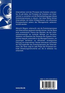 Albrecht Wagner entwickelt ein neuartiges Verfahren zur effizienten strategischen Führung von Unternehmen, bei dem die Führungskräfte den Evolutionsprozess des Unternehmens stimulieren und lenken. Für jede Phase des Prozesses zeigt er konkrete Umsetzungsinstrumente auf, die er teilweise neu entwickelt. Unternehmen sind den Prinzipien der Evolution unterworfen. Es gilt daher, die Prinzipien der Evolution von Unternehmen zu verstehen und die Rahmenbedingungen dieses Evolutionsprozesses zu steuern. Auf diese Weise können Unternehmen mit hohen Erfolgschancen und effizientem Energieaufwand seitens des Managements weiterentwickelt werden.