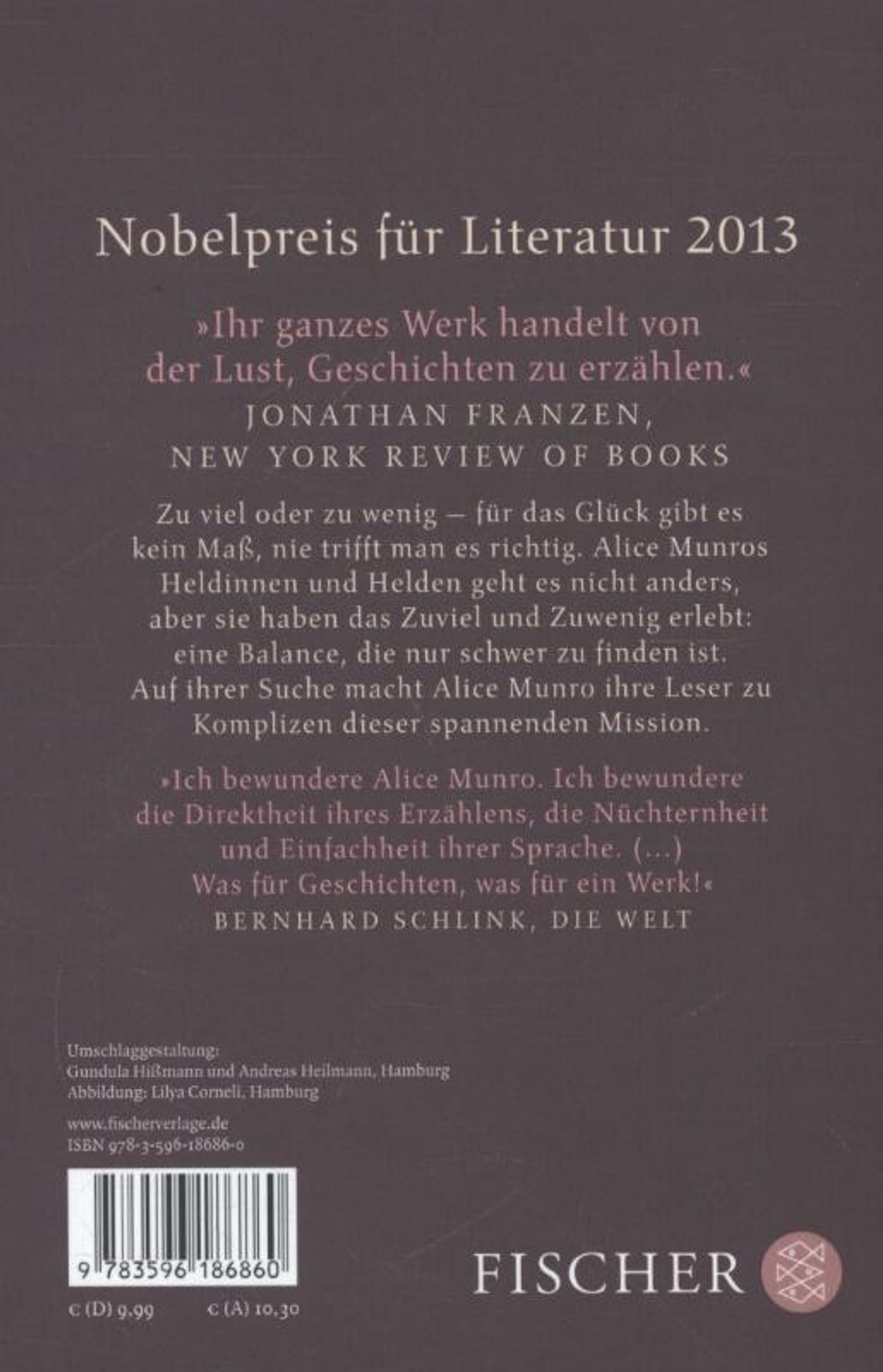Zu viel oder zu wenig - für das Glück gibt es kein Maß, nie trifft man es richtig. Alice Munros Heldinnen und Helden geht es nicht anders, sie haben das Zuviel und Zuwenig erlebt: eine Balance ist nur schwer zu finden. Auf der Suche nach ihr macht Alice Munro ihre Leser zu Komplizen dieser spannenden Mission.