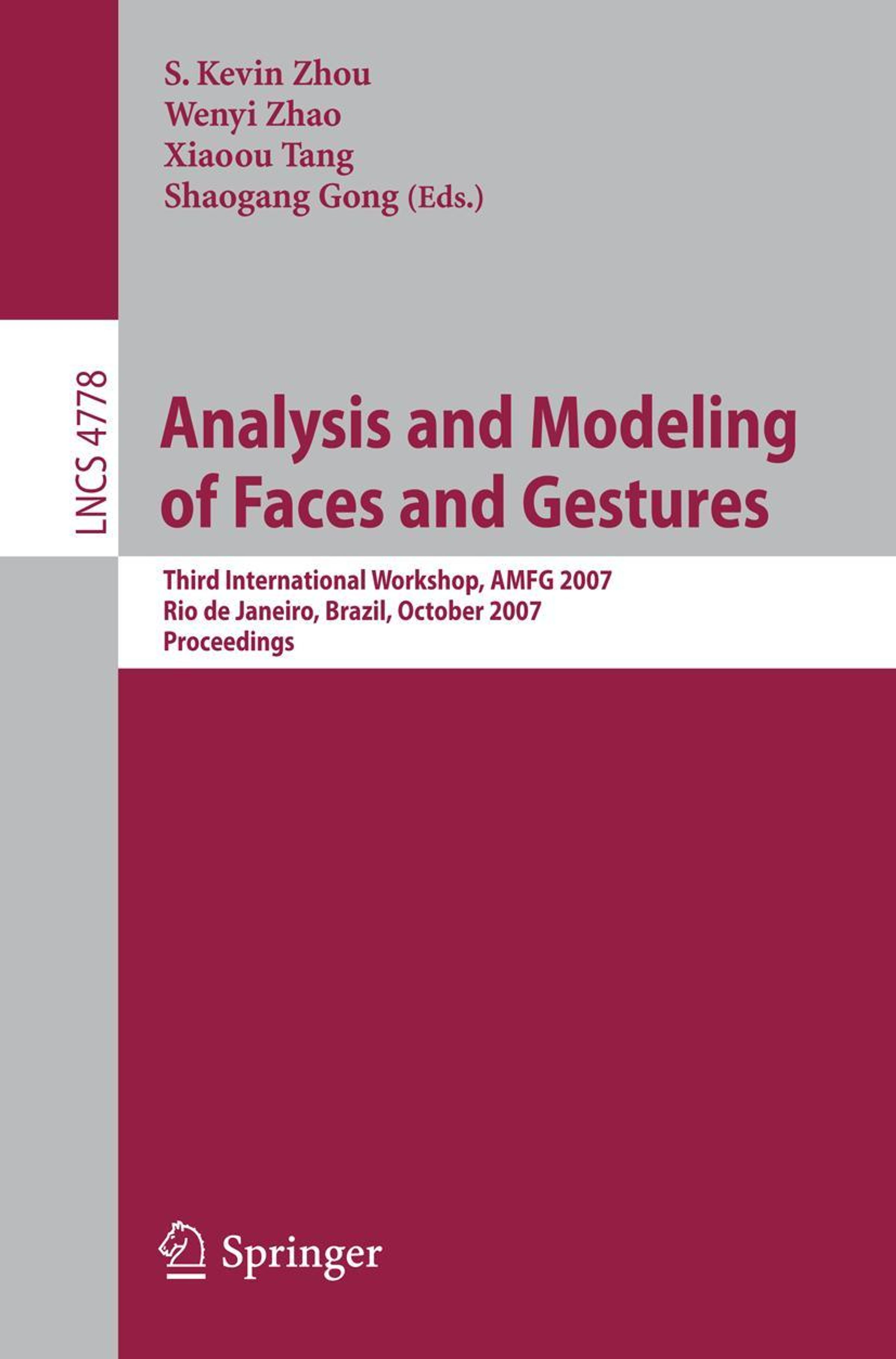 The 2007 IEEE International Workshop on Analysis and Modeling of Faces and Gestures(AMFG)isthethirdworkshopofitstypeorganizedinconjunctionwith ICCV, this time in Rio de Janeiro, Brazil. Our primary goal is to bring together researchersand research groupsto review the status of recognition, analysis and modeling of face, gesture, activity, and behavior; to discuss the challenges that we are facing; and to explore future directions. This year we received 55 submissions. Each paper was reviewed by three program committee members. The whole reviewing process was double blind. However, due to size limit, we were only able to accommodate 22 papers, among which 8 are orals and 14 are posters. The topics covered by these accepted papers include feature representation, 3D face, robust recognition under pose and illumination variations, video-basedface recognition, learning, facial motion analysis, body pose estimation, and sign recognition. A special word of thanks goes to Dr. Feng Zhao, our organizing chair, for his dedication and great e?orts in maintaining both the online submission system and workshop website and in handling most of the author contacts. We are indebted to the advisory committee members for their valuable suggestions and to the program committee members for their hard work and timely reviews. Finally, we thank Cognitec System GmbH and Siemens Corporate Research for their sponsorship. October 2007 S. Kevin Zhou Wen-Yi Zhao Xiaoou Tang Shaogang Gong Organization AMFG 2007 was held in conjunction with ICCV 2007. Workshop Chairs S. Kevin Zhou Siemens Corporate Research Wen-Yi Zhao Intuitive Surgical, Inc.