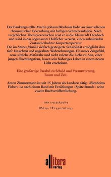 Der Bankangestellte Martin Johann Blenheim leidet an einer seltenen rheumatischen Erkrankung mit heftigen Schmerzanfällen. Er wird in das sogenannte Heilfieber versetzt, einen anhaltenden Zustand erhöhter Körpertemperatur. Die im Status febrilis vielfach gesteigerte Sensibilität ermöglicht ihm tiefe Einsichten und ungeahnte Wahrnehmungen. Eine großartige Parabel zu Schuld und Verantwortung, Raum und Zeit.