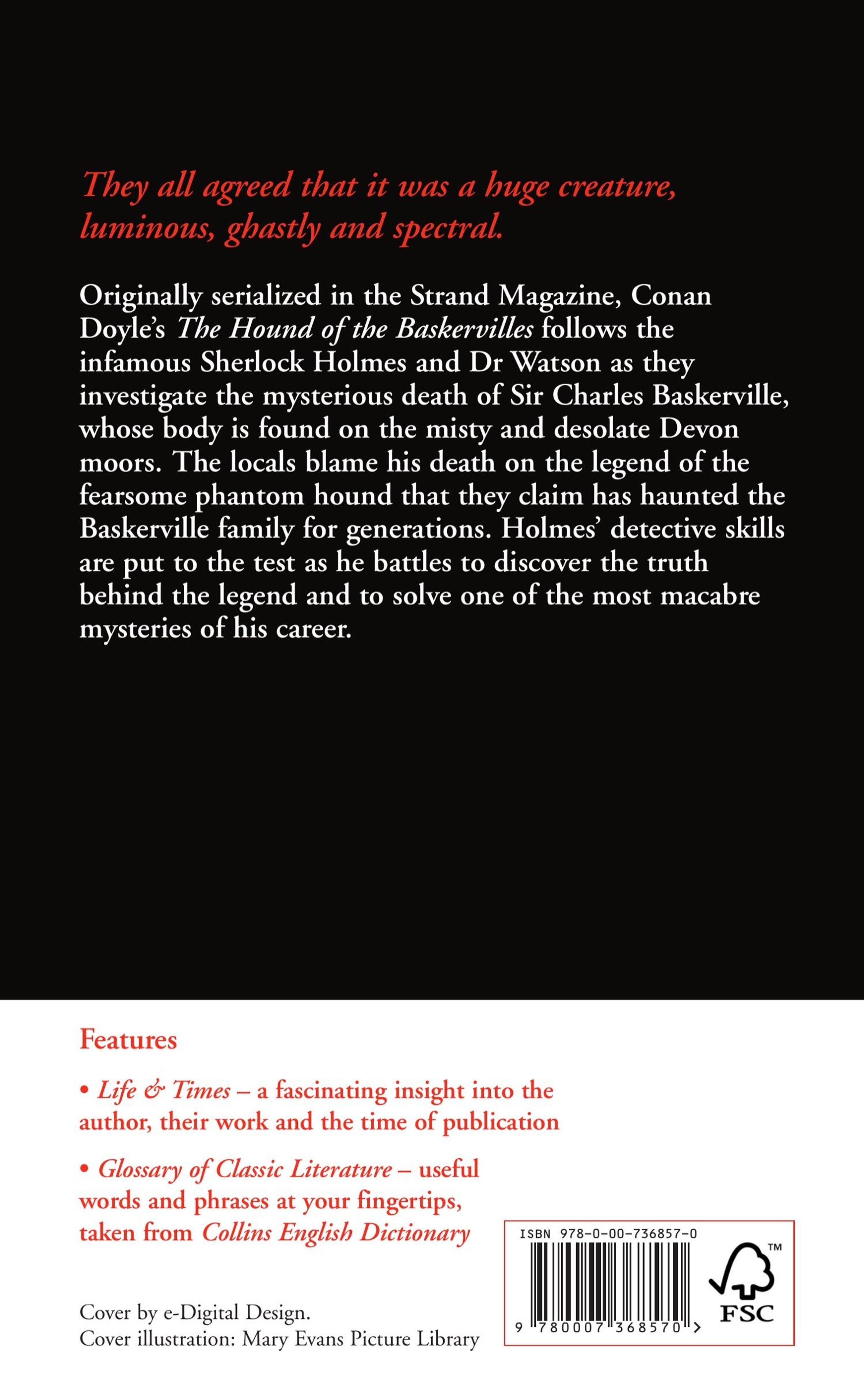 Originally serialised in The Strand Magazine, Conan Doyle's The Hound of the Baskervilles follows the infamous Sherlock Holmes and Dr Watson as they investigate the mysterious death of Sir Charles Baskerville, whose dead body is found on the misty and desolate Devon moors.
