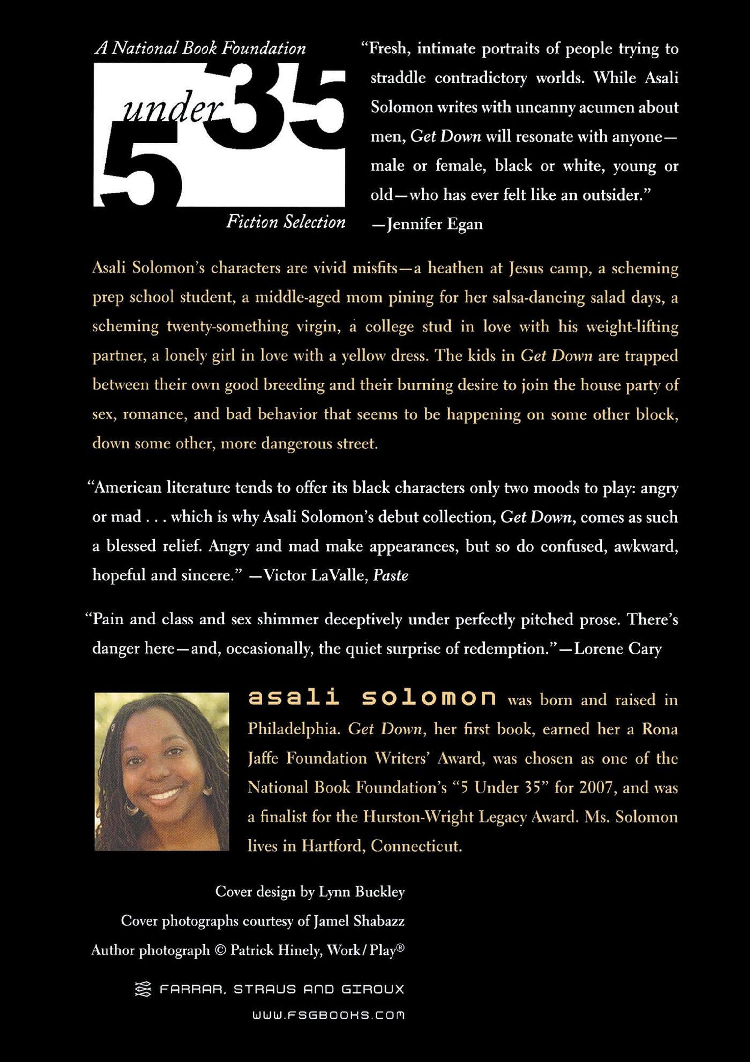Asali Solomon's characters are vivid misfits-a heathen at Jesus camp, a scheming prep-school student, a middle-aged mom pining for her salsa-dancing salad days, a scheming twentysomething virgin, a college stud in love with his weight-lifting partner, a lonely girl in love with a yellow dress. The kids in Get Down are trapped between their own good breeding and their burning desire to join the house party of sex, romance, and bad behavior that seems to be happening on some other block, down some other, more dangerous street. Get Downis, in the words of Edward P. Jones, "touching and sensitively observed . . . from the first word to the last."