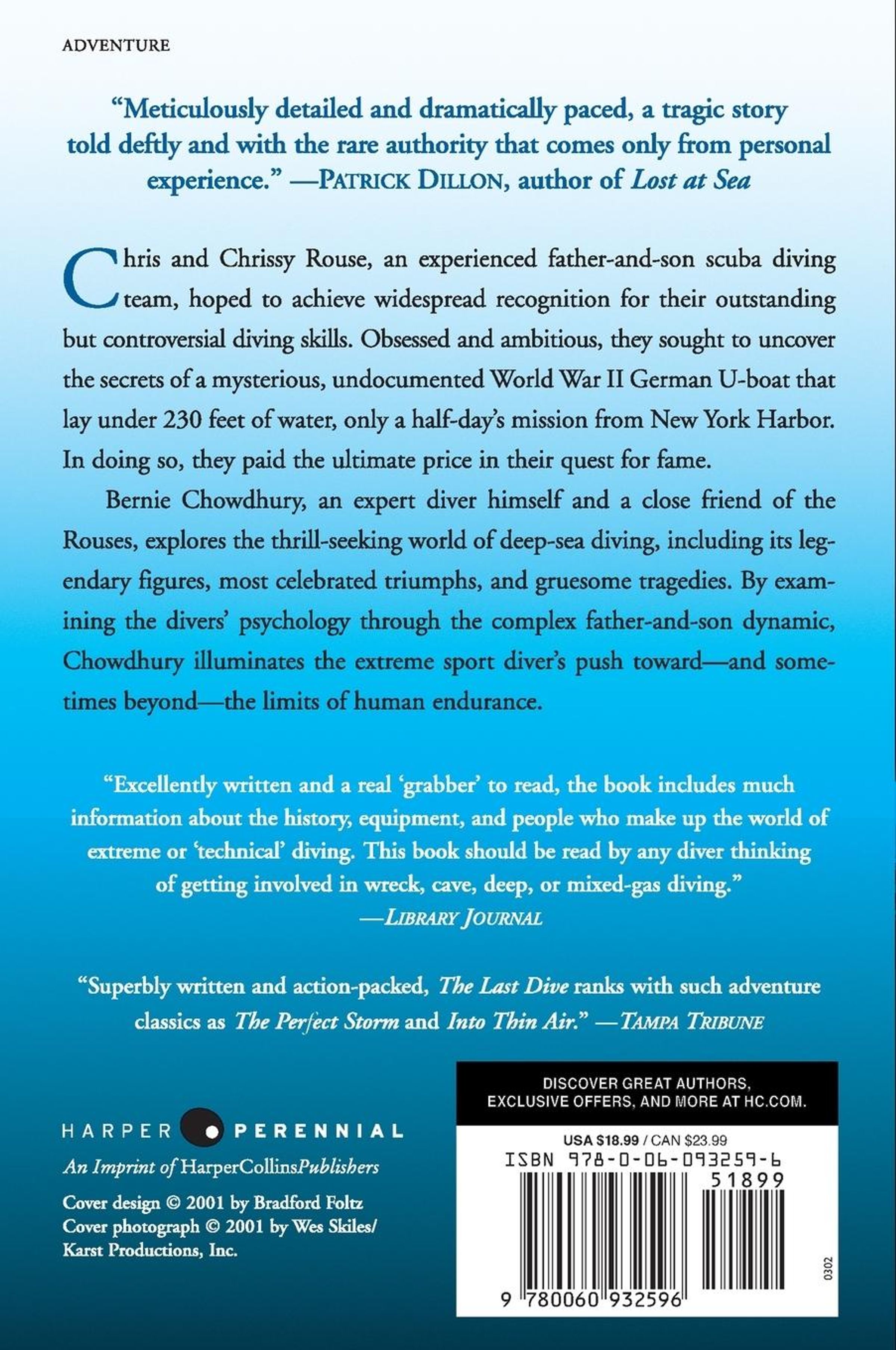 What price are you willing to pay for adventure and knowledge? Spurred on by a fatal combination of obsession and ambition, Chris and Chrisy Rouse, an experienced father-son scuba diving team, hoped to achieve wide-spread recognition for their outstanding and controversial diving skills by solving the secrets of a mysterious, undocumented, World War II German U-boat that lay only a half days mission from New York Harbor. Chris and Chrisy Rouse found the ultimate cost of chasing their personal challenge: death from what divers dread the most - decompression sickness, or "the bends." In this gripping recounting of the Rouses tragedy, author Bernie Chowdhury, himself an expert diver, explores the thrill-seeking, high-risk world of deep sea diving, its legendary figures, most celebrated triumphs and notorious tragedies. By examining the divers psychology through the complex dynamic between father and son, Chowdhury offers a modern morality tale that illuminates the explorers willingness to risk it all for the pure, raw adrenaline rush of the unknown and the extreme, and the desire to expand our knowledge and the limits of human endurance.