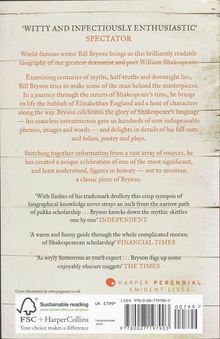 Examining centuries of myths, half-truths and downright lies, Bill Bryson makes sense of the man behind the masterpieces. As he leads us through the crowded streets of Elizabethan England, he brings to life the places and characters that inspired Shakespeare's work. Along the way he delights in the inventiveness of Shakespeare's language, which has given us so many of the indispensable words and phrases we use today, and celebrates the Bard's legacy to our literature, culture and history.