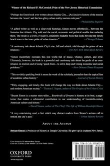 In this wide-ranging book, Bryant Simon does far more than tell a nostalgic tale of Atlantic City's rise, near death, and reincarnation. He turns the depiction of middle-class vacationers into a revealing discussion of the boundaries of public space in urban America. In the past, he argues, the public was never really about democracy, but about exclusion. During Atlantic City's heyday, African Americans were kept off the Boardwalk and away from the beaches. The overly boisterous or improperly dressed were kept out of theaters and hotel lobbies by uniformed ushers and police. The creation of Atlantic City as the "Nation's Playground" was dependent on keeping undesirables out of view unless they were pushing tourists down the Boardwalk on rickshaw-like rolling chairs or shimmying in smoky nightclubs.