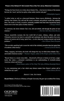 In this wide-ranging book, Bryant Simon does far more than tell a nostalgic tale of Atlantic City's rise, near death, and reincarnation. He turns the depiction of middle-class vacationers into a revealing discussion of the boundaries of public space in urban America. In the past, he argues, the public was never really about democracy, but about exclusion. During Atlantic City's heyday, African Americans were kept off the Boardwalk and away from the beaches. The overly boisterous or improperly dressed were kept out of theaters and hotel lobbies by uniformed ushers and police. The creation of Atlantic City as the "Nation's Playground" was dependent on keeping undesirables out of view unless they were pushing tourists down the Boardwalk on rickshaw-like rolling chairs or shimmying in smoky nightclubs.