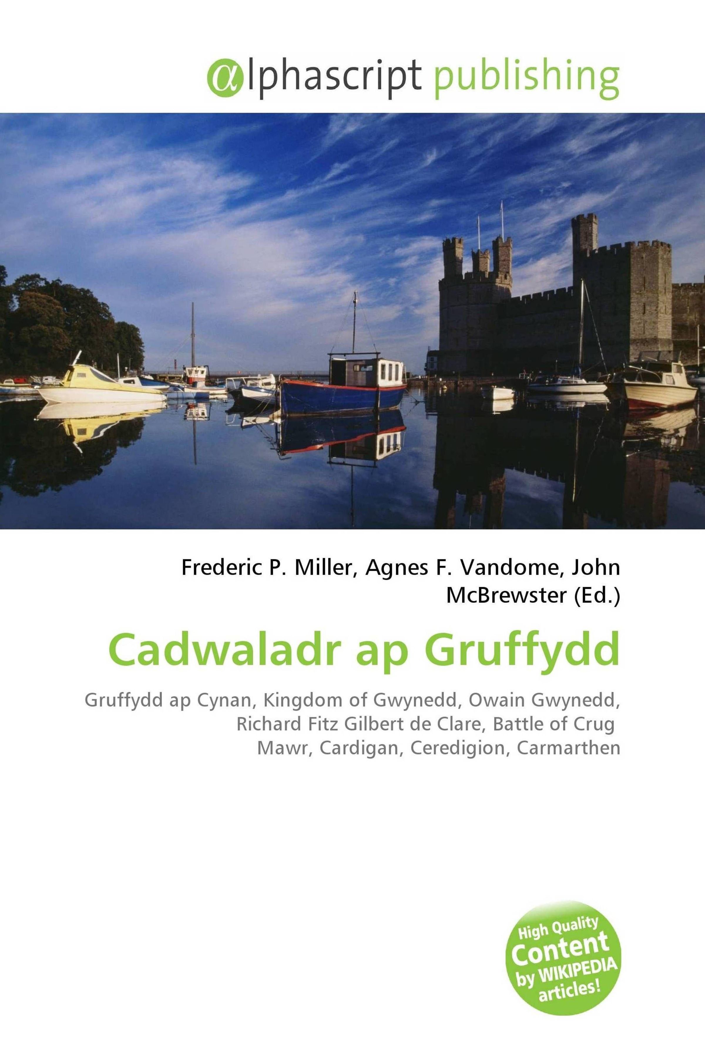 Please note that the content of this book primarily consists of articles available from Wikipedia or other free sources online. Cadwaladr ap Gruffydd (ca. 1096 - 1172) was the third son of Gruffydd ap Cynan, King of Gwynedd, Wales and younger brother of Owain Gwynedd. Cadwaladr first appears in the historical record in 1136, when following the killing of the lord of Ceredigion, Richard Fitz Gilbert de Clare, he accompanied his brother Owain Gwynedd in an invasion of Ceredigion.