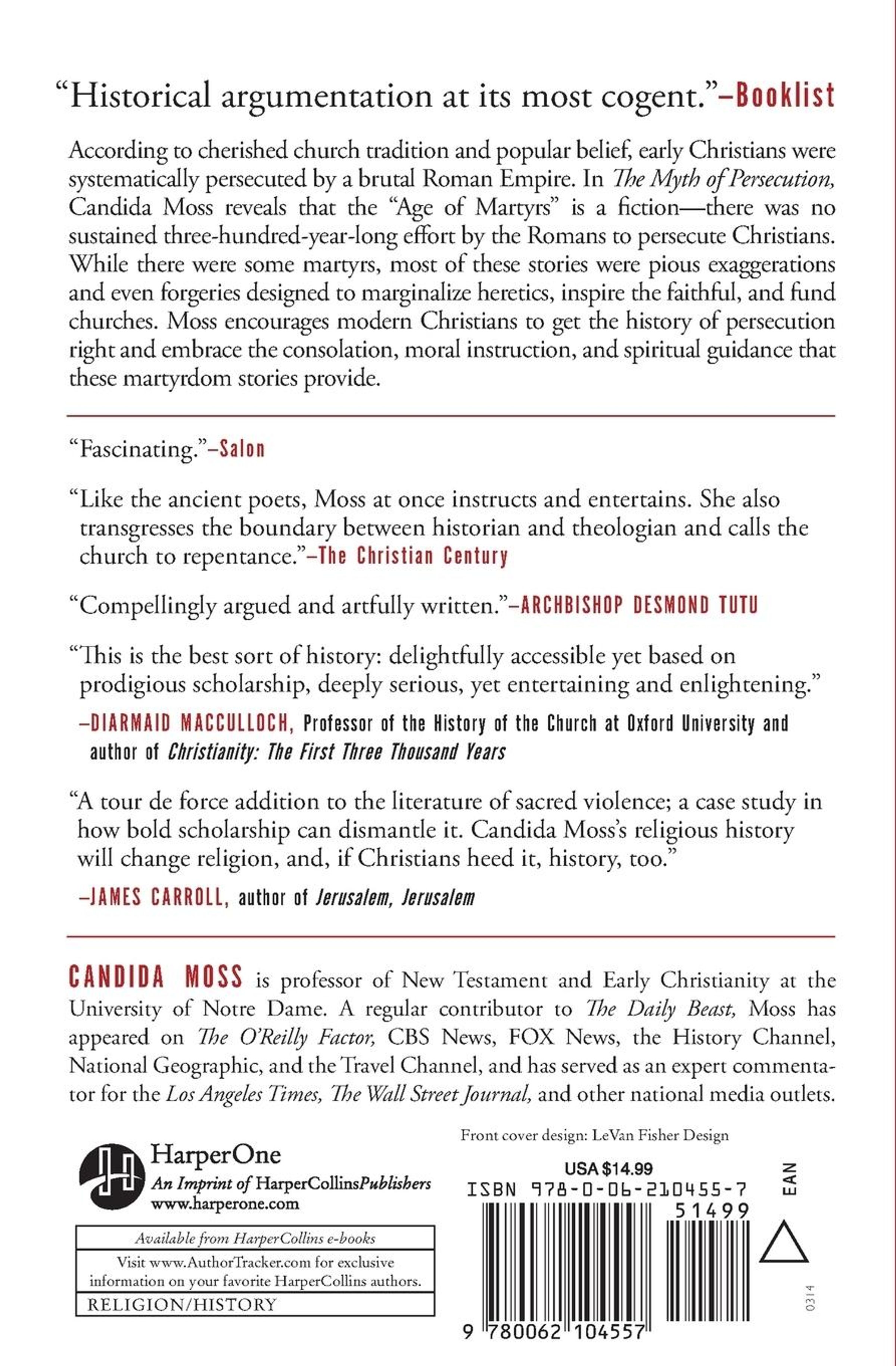 In The Myth of Persecution, Candida Moss, a leading expert on early Christianity, reveals how the early church exaggerated, invented, and forged stories of Christian martyrs and how the dangerous legacy of a martyrdom complex is employed today to silence dissent and galvanize a new generation of culture warriors.
