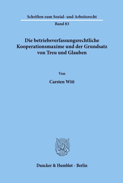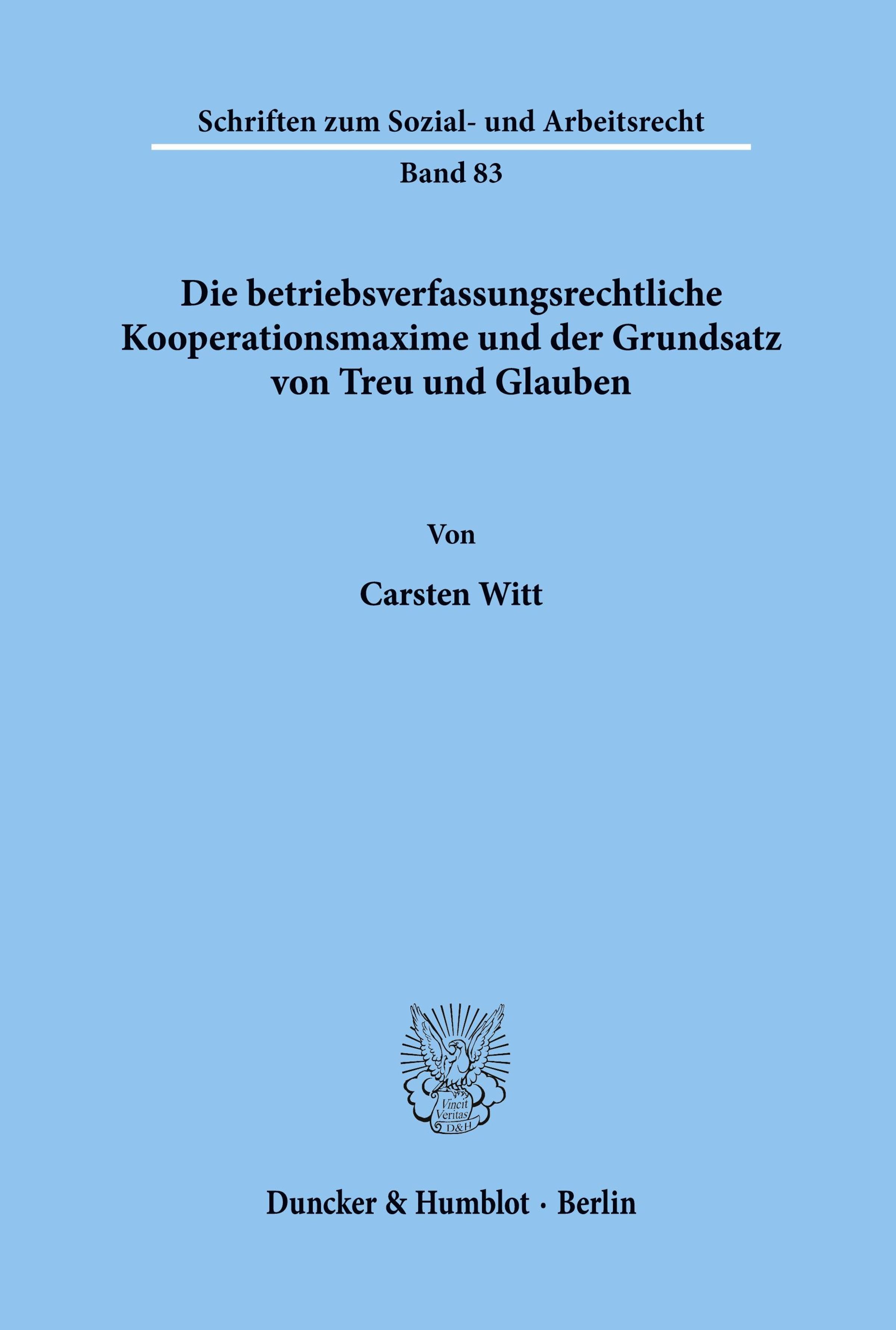 Carsten Witt: Die betriebsverfassungsrechtliche Kooperationsmaxime und der Grundsatz von Treu und Glauben., Kartoniert / Broschiert