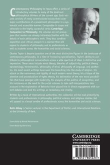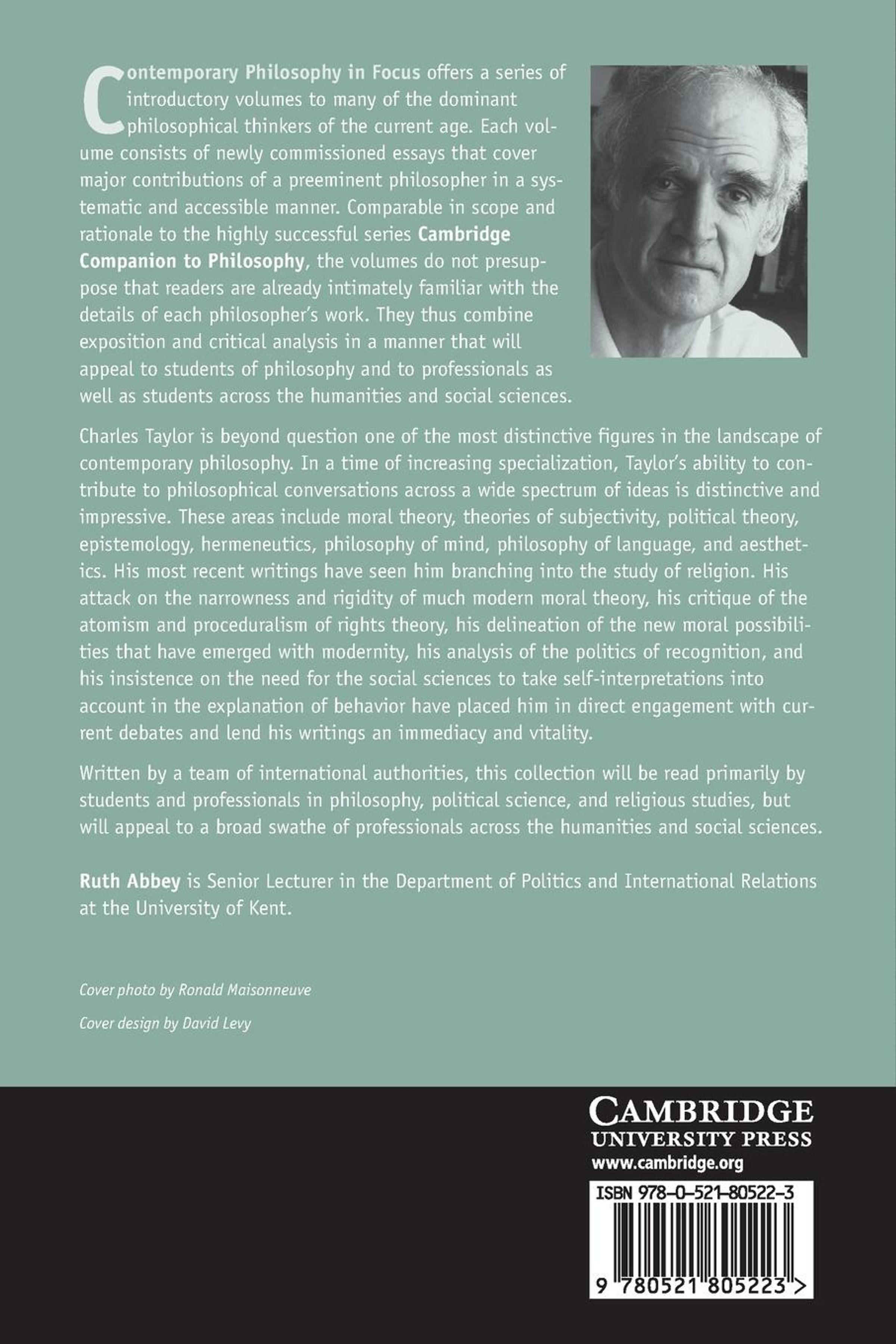 Charles Taylor is one of the most distinctive figures in the landscape of contemporary philosophy. His ability to contribute to philosophical conversations across a wide spectrum of ideas is especially impressive in a time of increasing specialization. These areas include moral theory, theories of subjectivity, political theory, epistemology, hermeneutics, philosophy of mind, philosophy of language and aesthetics. Most recently, Taylor has branched into the study of religion. Written by a team of international authorities, this collection will be read primarily by students and academic professionals in philosophy, political science, and religious studies, and will also appeal to a broad swathe of professionals across the humanities and social sciences. Ruth Abbey is Senior Lecturer in Political Theory at University of Kent at Canterbury. She has published numerous articles and is author of Nietzsche's Middle Period (Oxford University Press, 2000) and Philosophy Now: Charles Taylor (Princeton University Press, 2000).