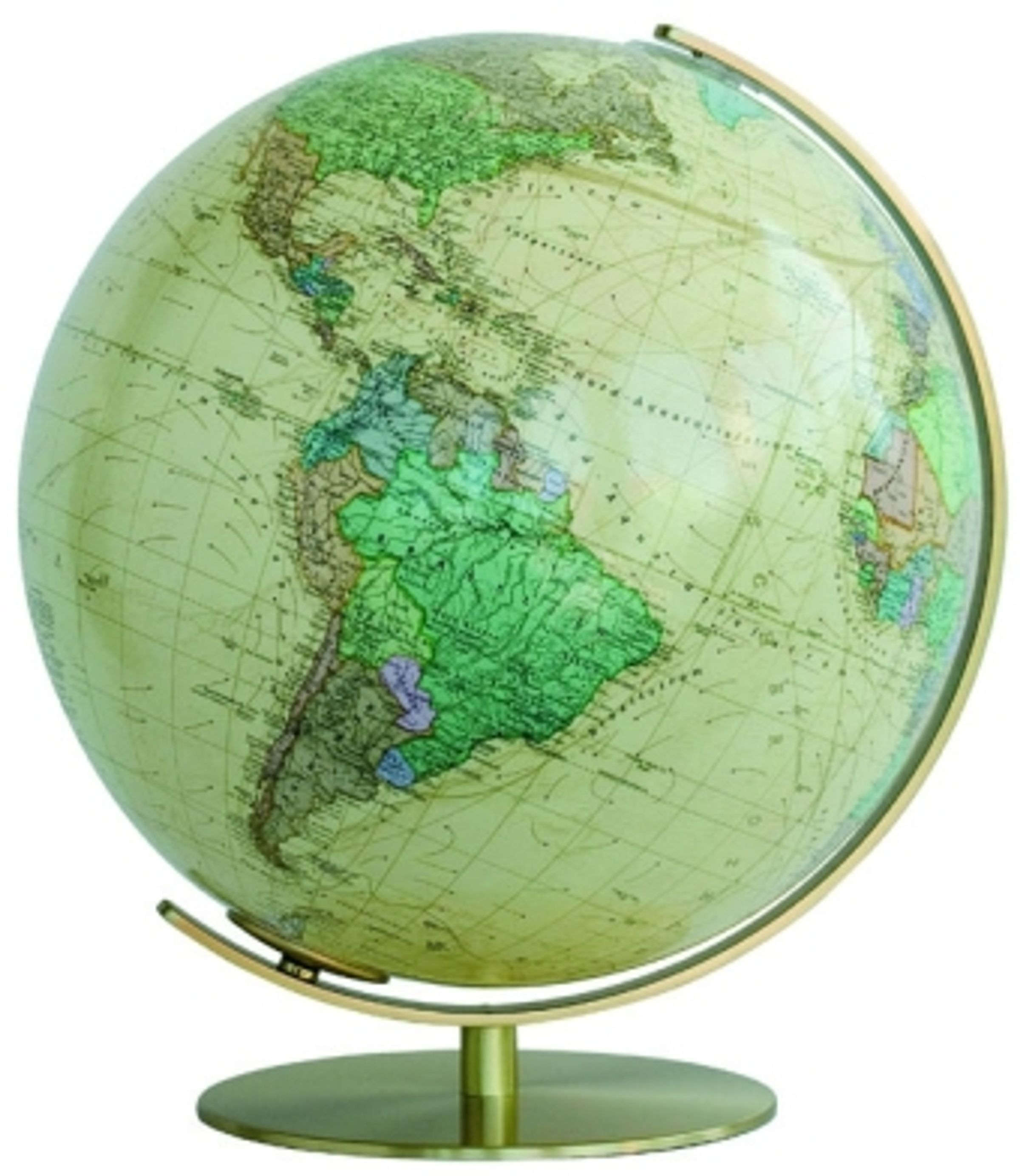 Leuchtglobus aus Acrylglas, Ø 34 cm, handkaschiert, Messingausführung.