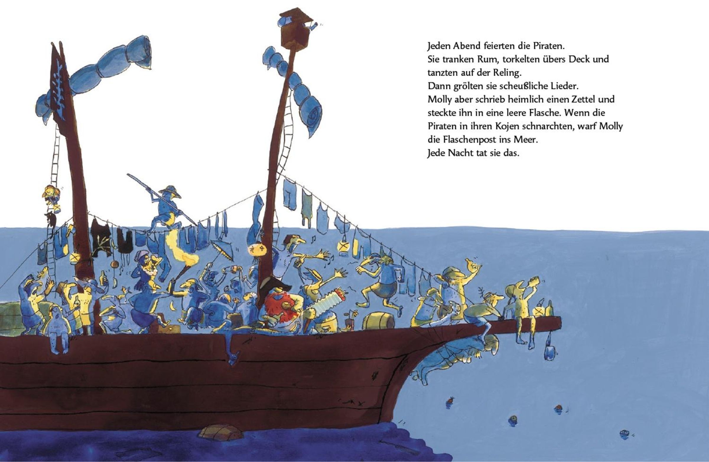 - Meisterhaft illustriert : Kerstin Meyers Illustrationen verleihen dem Buch eine ungeheure Dynamik und laden dazu ein, in die schaukelnden Wellen und das laute Piratenleben einzutauchen.