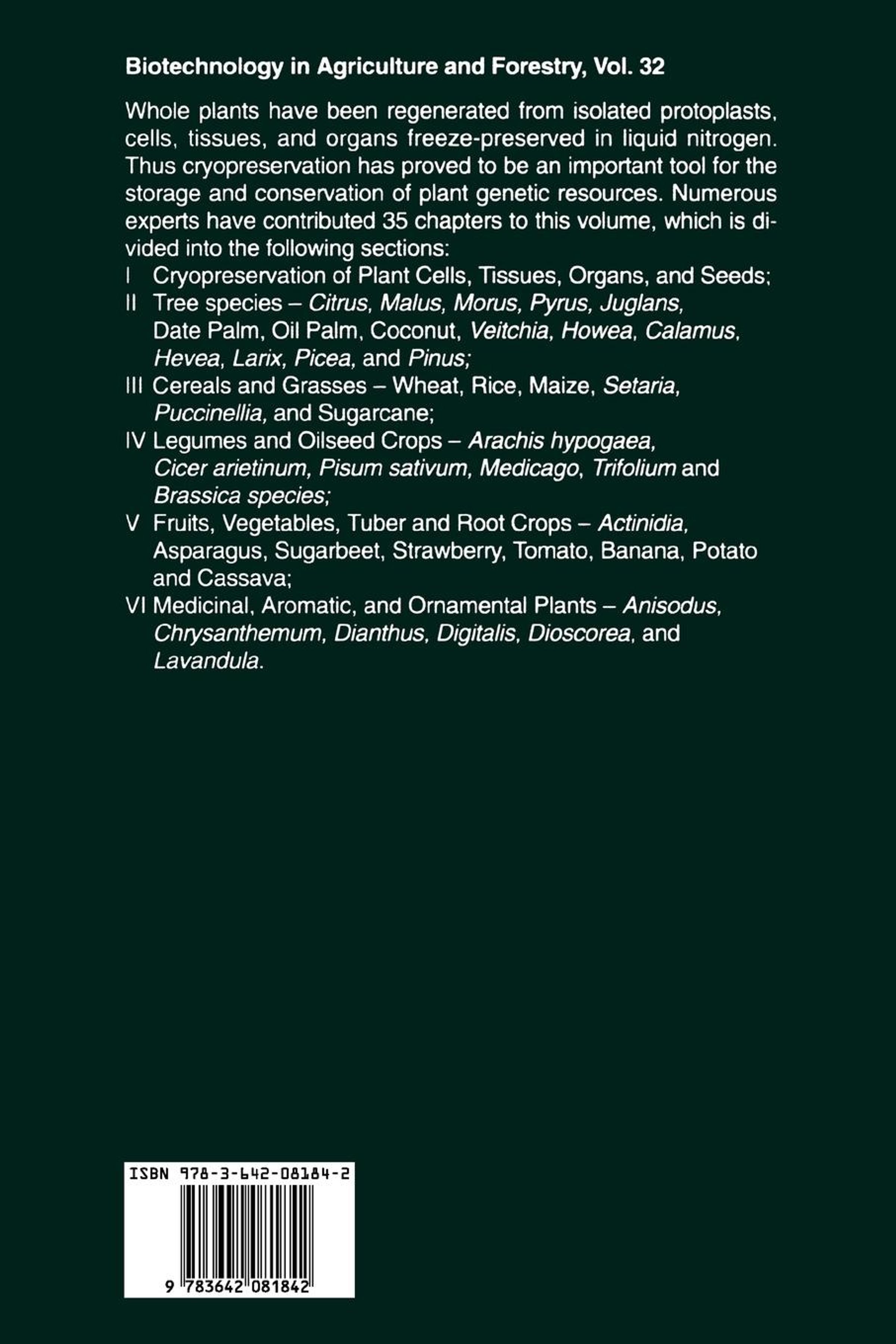 The germ plasm of numerous plant species, especially those of forest trees, some agricultural crops, and medicinal plants, is endangered and threatened with extinction. This depletion of germplasm pools and the shrinkage of naturally occurring genetic resources have caused international concern. Conventionally, the germplasm of plants is conserved through seeds, tubers, roots, corms, rhizomes, bulbs, cuttings, etc. However, the germ plasm of a number of trees and plantation crops (such as coconut, cocao, coffee, oil palm, rubber, mango, horse chestnut, etc. ) cannot be preserved since their seed are short-lived (recalcitrant). Likewise, germplasm of vegetatively propagated crops (such as potato and cassava) cannot be stored on a long term basis and has to be grown and multiplied periodically in nurseries and fields. The plants are thus exposed to unpredictable weather conditions and diseases, with the result that instances are known where entire genetic stocks are lost. Therefore, unconventional methods are being developed for the storage and international exchange of germplasm. For this purpose in vitro cultures have been employed, but they can only enable short-to medium term preservation; moreover, cell cultures upon repeated subculture undergo genetic erosion. In view of the recent developments in the in vitro induction of genetic variability through somaclonal variation, somatic hybridization, recombinant DNA technology, etc. , new methods need to be employed for the storage of desirable cultures. In this regard freeze preservation of cells in liquid nitrogen (-196 0q, like that of semen, enables long-term storage, theoretically, for an indefinite period of time.
