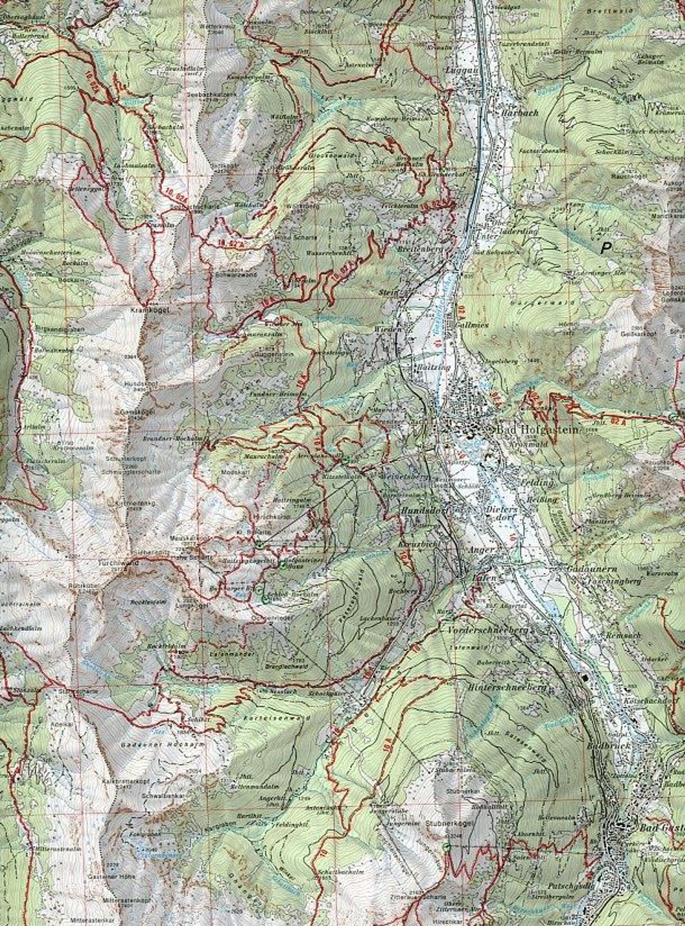 Topographische Karte 1: 50.000, mehrfarbig, mit Wegmarkierungen, Bushaltestellen, Schummerung, Felszeichnung, Gletscherdarstellung, Kennzeichnung der Klettersteige, UTM-Gitter. Gebiet: Westliche Radstädter Tauern, nördliche Ankogel- und Goldberggruppe, östliche Glocknergruppe und Dientener Berge. Karte in Kunststoffhülle (Polypropylen) eingesteckt.