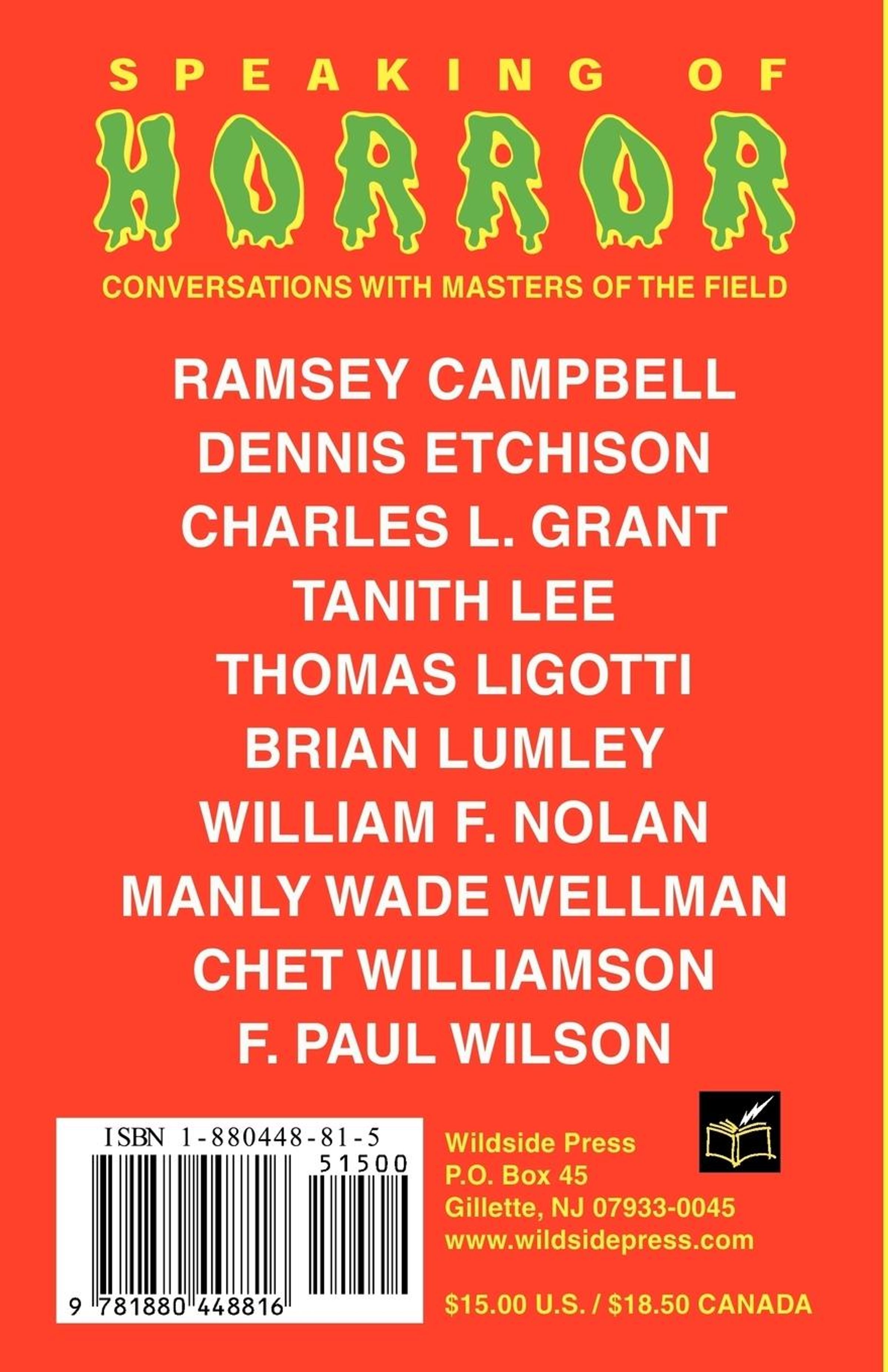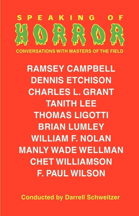 This volume collects interviews with Ramsey Campbell, Dennis Etchison, Charles L. Grant, Tanith Lee, Thomas Ligotti, Brian Lumley, William F. Nolan, Manly Wade Wellman, Chet Williamson, and F. Paul Wilson. Conducted by acclaimed author and editor Darrell Schweitzer.