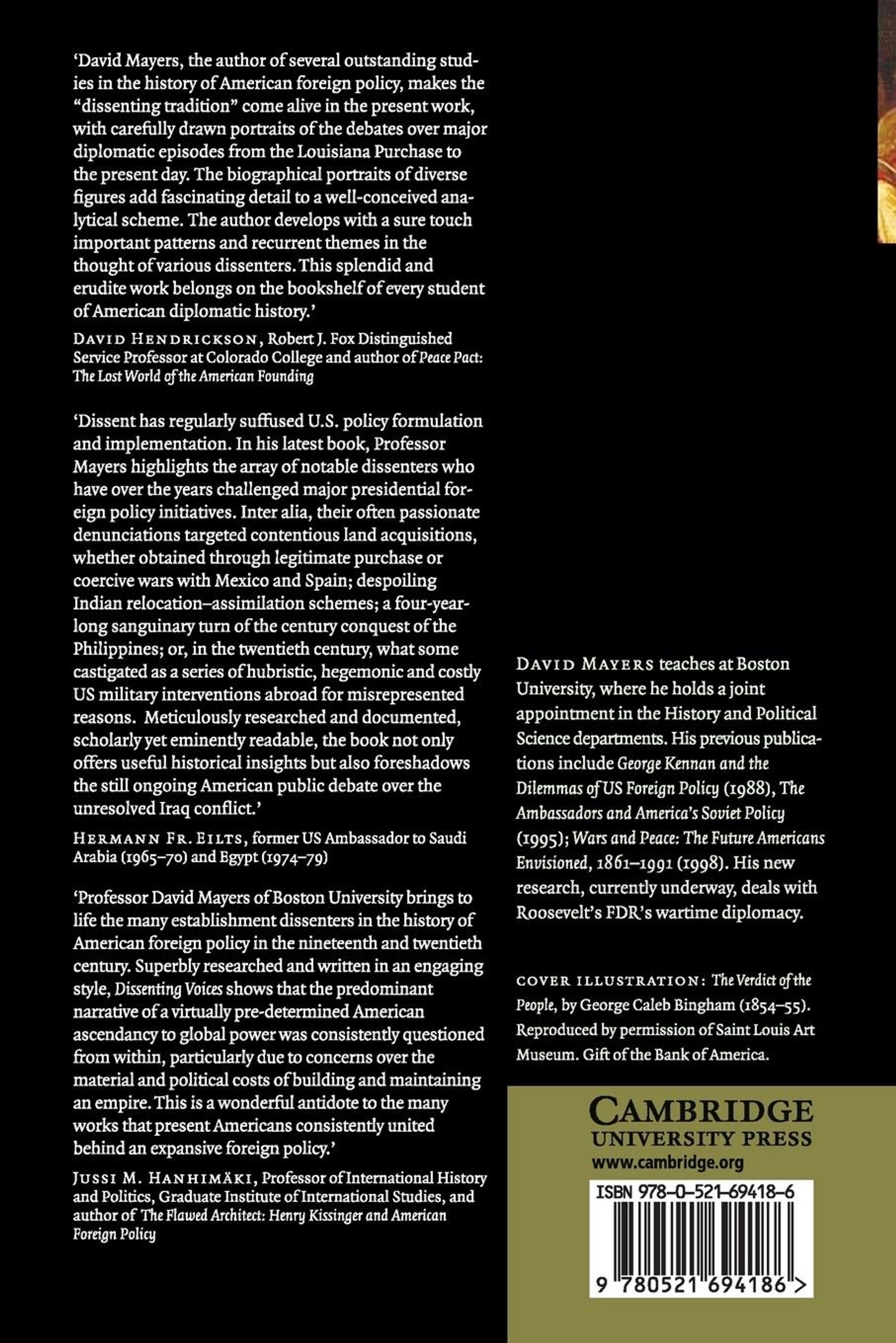This book offers a major rereading of US foreign policy from Thomas Jefferson's purchase of Louisiana expanse to the Korean War. This period of one hundred and fifty years saw the expansion of the United States from fragile republic to transcontinental giant. David Mayers explores the dissenting voices which accompanied this dramatic ascent, focusing on dissenters within the political and military establishment and on the recurrent patterns of dissent that have transcended particular policies and crises. The most stubborn of these sprang from anxiety over the material and political costs of empire while other strands of dissent have been rooted in ideas of exigent justice, realpolitik, and moral duties existing beyond borders. Such dissent is evident again in the contemporary world when the US occupies the position of preeminent global power. Professor Mayers's study reminds us that America's path to power was not as straightforward as it might now seem.