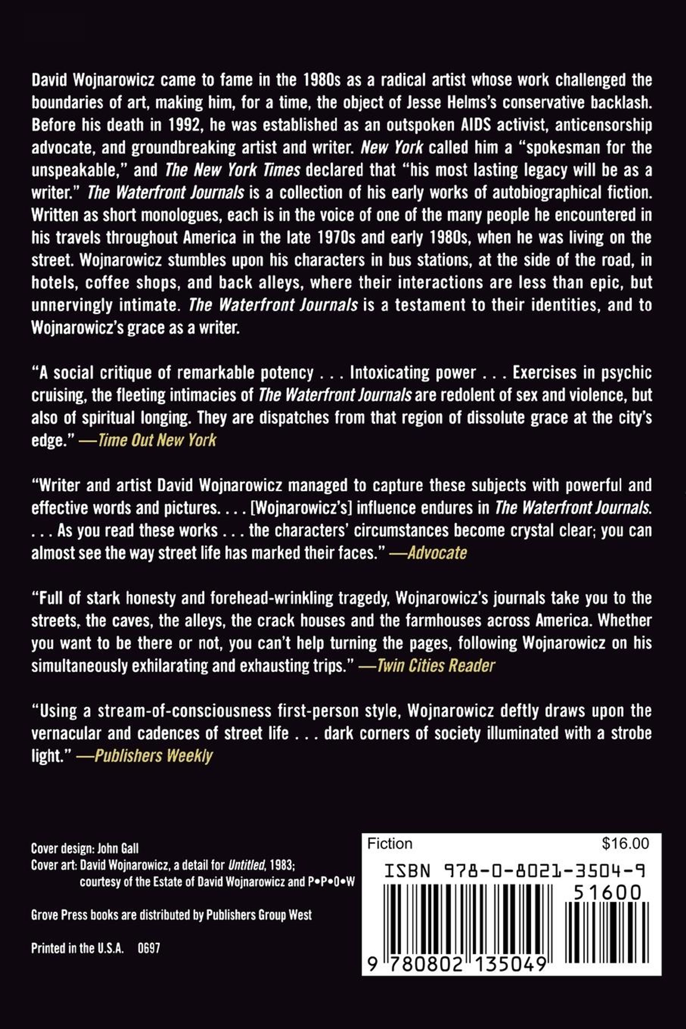 'The Waterfront Journals' is a collection of the author's early works of autobiographical fiction. Written as short monologues, each is in the voice of one of the many people he encountered in his travels throughout America in the late 1970s and early 1980s, when he was living on the street.