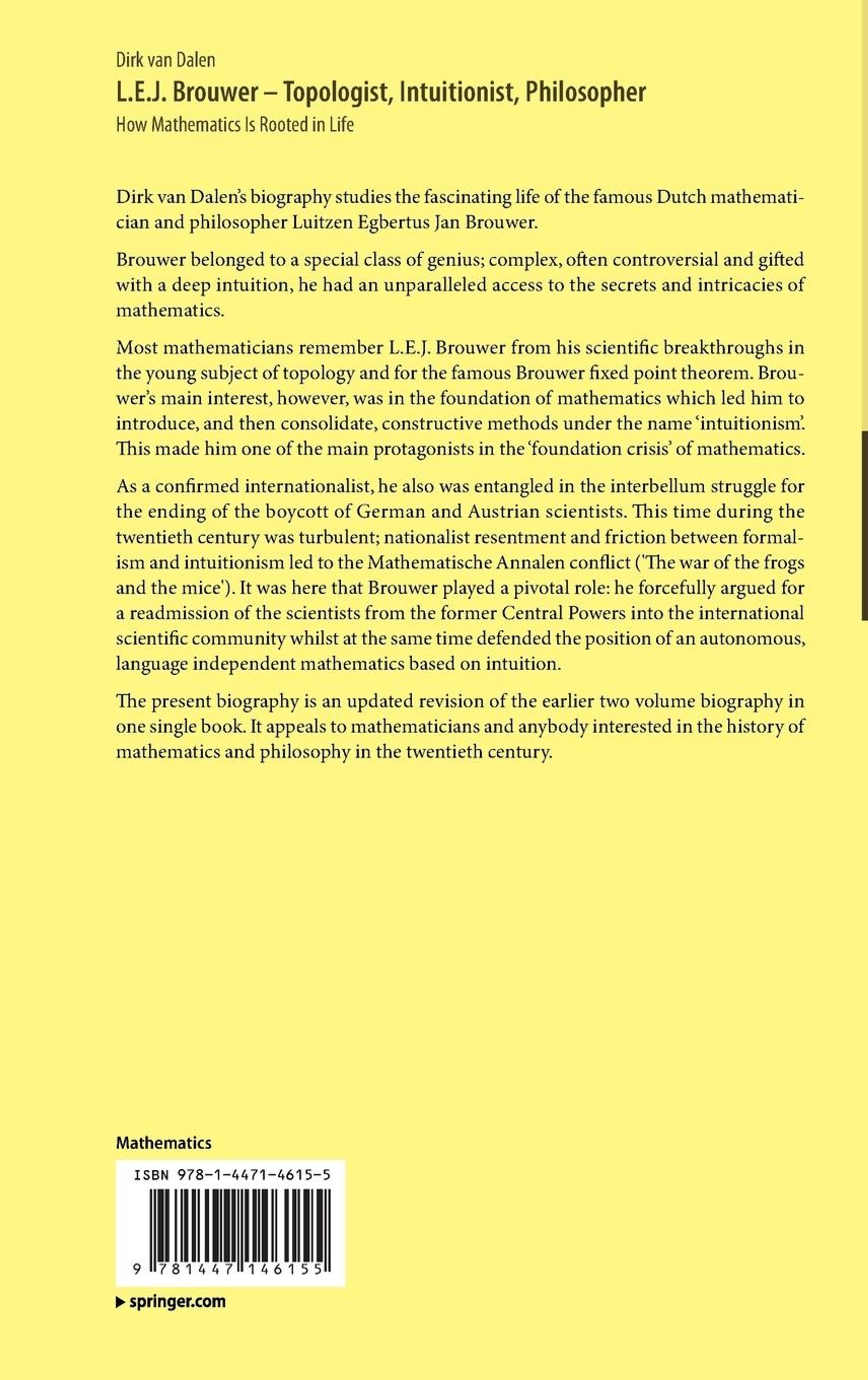 Dirk van Dalen¿s biography studies the fascinating life of the famous Dutch mathematician and philosopher Luitzen Egbertus Jan Brouwer.