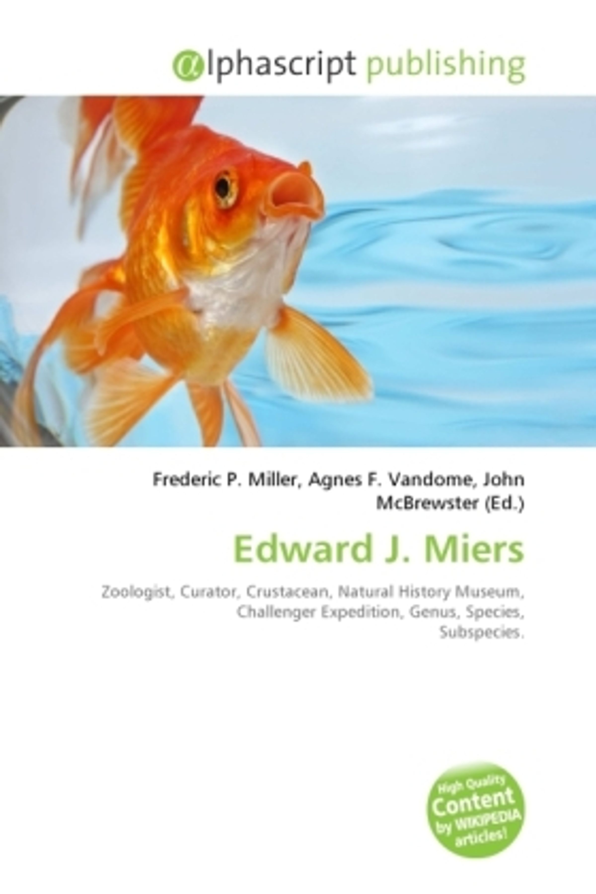 Please note that the content of this book primarily consists of articles available from Wikipedia or other free sources online. Edward John Miers F. Z.S. F. L.S. (1851-1930) was a British zoologist and curator of the crustacean collection at the Natural History Museum in London. He contributed to the scientific reports from the Challenger expedition of 1872-1876, and described 32 new genera and at least 260 new species and subspecies of decapod crustaceans, along with four genera and 72 new species in other orders.