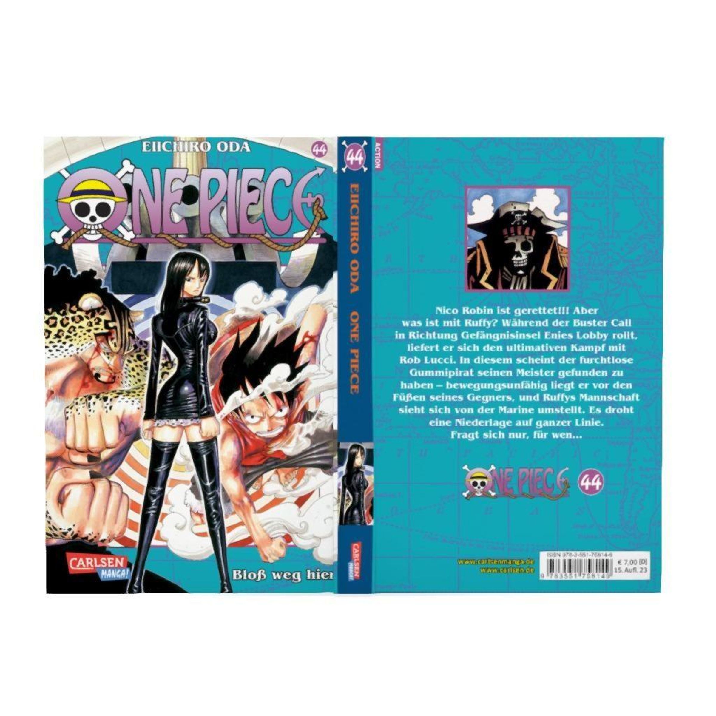 Nico Robin ist gerettet!!! Aber was ist mit Käpt'n Ruffy? Während der anforderte Buster Call unaufhaltsam in Richtung Gefängnisinsel Enies Lobby rollt, liefert er sich den ultimativen Kampf mit Rob Lucci. Doch in diesem scheint der furchtlose Gummipirat seinen Meister gefunden zu haben - bewegungsunfähig liegt er vor den Füßen seines Gegners, der zum finalen Schlag ausholt. Plötzlich sieht sich seine Mannschaft, die ohne ihren Anführer nicht flüchten will, von Hunderten von verheerenden Kanonen der Marine umstellt. Es droht eine Niederlage auf ganzer Linie. Fragt sich nur, für wen...