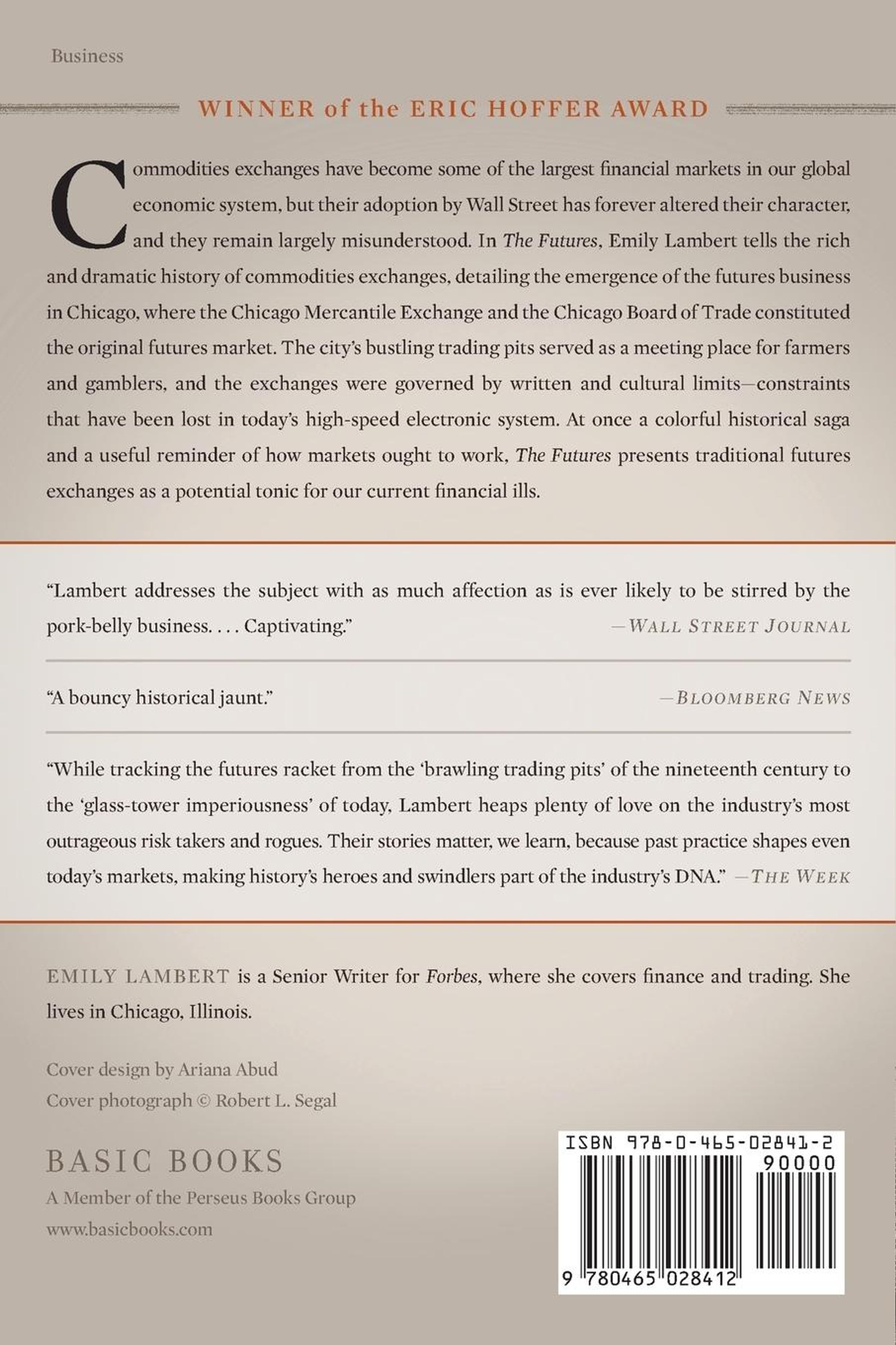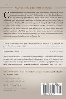 In The Futures , Emily Lambert, senior writer at Forbes magazine, tells us the rich and dramatic history of the Chicago Mercantile Exchange and Chicago Board of Trade, which together comprised the original, most bustling futures market in the world. She details the emergence of the futures business as a kind of meeting place for gamblers and farmers and its subsequent transformation into a sophisticated electronic market where contracts are traded at lightning-fast speeds. Lambert also details the disastrous effects of Wall Street's adoption of the futures contract without the rules and close-knit social bonds that had made trading it in Chicago work so well. Ultimately Lambert argues that the futures markets are the real "free" markets and that speculators, far from being mere parasites, can serve a vital economic and social function given the right architecture. The traditional futures market, she explains, because of its written and cultural limits, can serve as a useful example for how markets ought to work and become a tonic for our current financial ills.