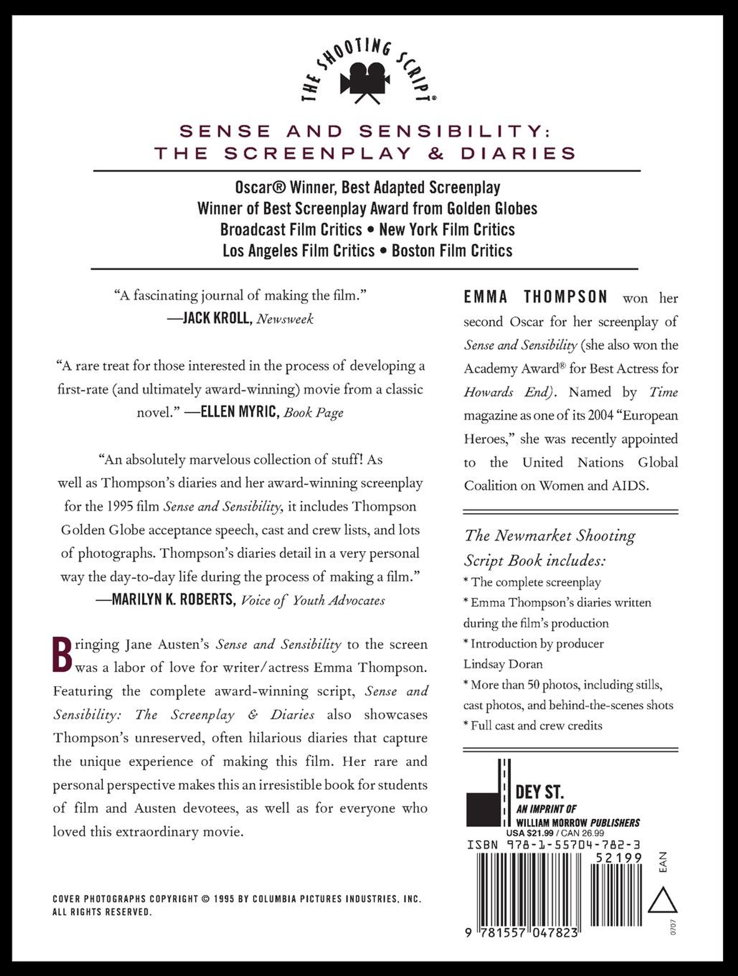 Bringing Jane Austen's Sense and Sensibility to the screen was a labor of love for writer / actress Emma Thompson. Featuring the complete award-winning script, Sense and Sensibility: The Screenplay & Diaries also showcases Thompson's unreserved, often hilarious diaries that capture the unique experience of making this film. Her rare and personal perspective makes this an irresistible book for students of film and Austen devotees, as well as for everyone who loved this extraordinary movie.