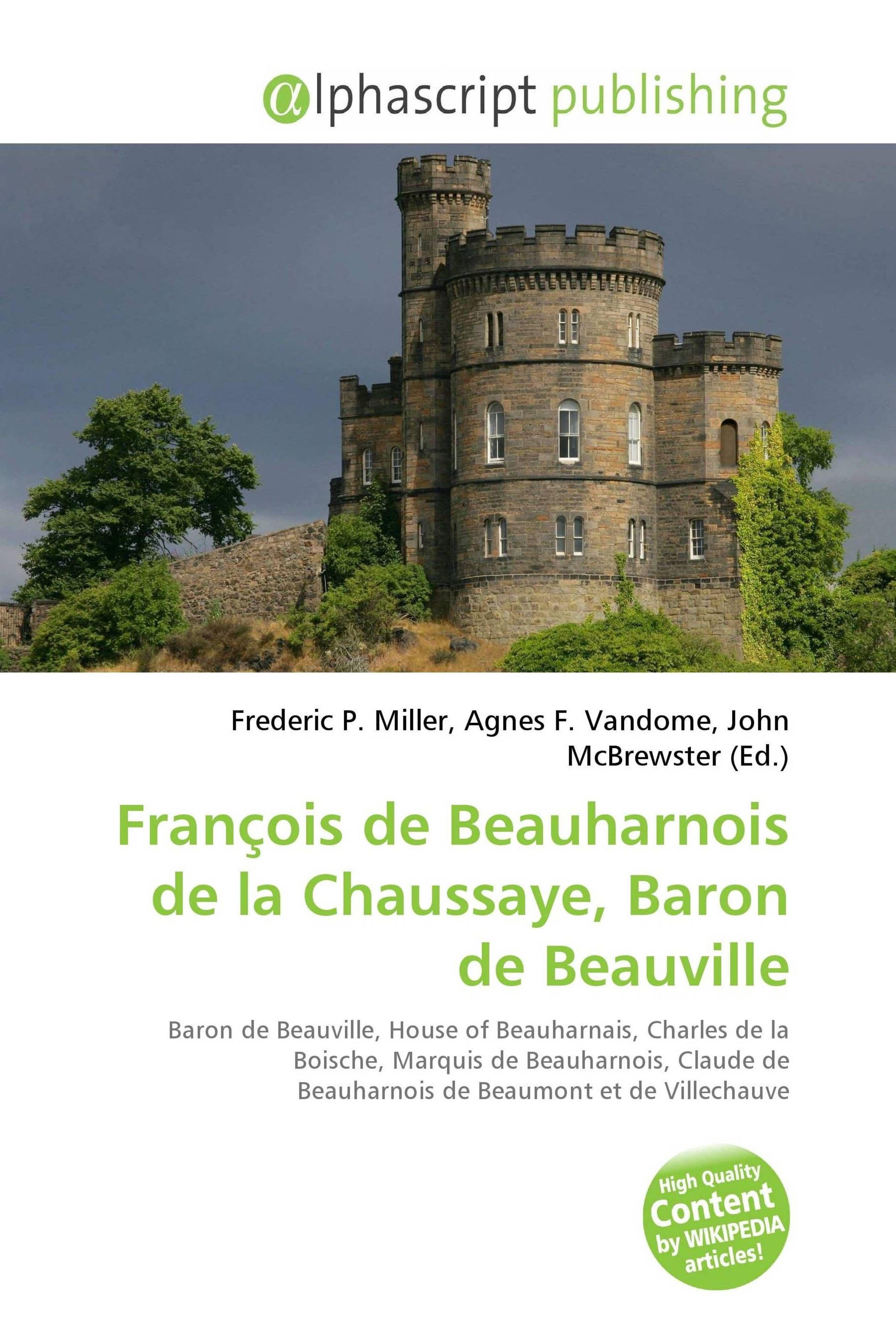 Please note that the content of this book primarily consists of articles available from Wikipedia or other free sources online. François de Beauharnois de la Chaussaye, Baron de Beauville or François de Beauharnais de La Boëche / Boische (bap 19 September 1665 / 1668 - 8 or 9 October 1746, La Chaussée, near Orléans) was a French naval and colonial administrator in France itself and in New France, and a member of the House of Beauharnais.