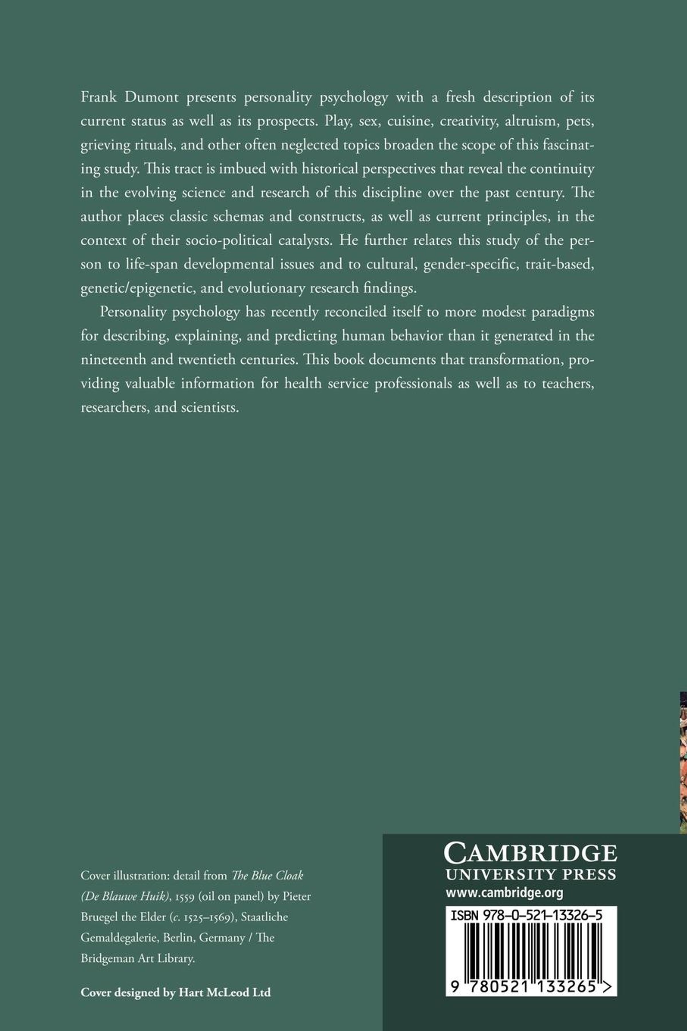 In this book Frank Dumont presents personality psychology with a fresh description of its current status as well as its prospects. Play, sex, cuisine, creativity, altruism, pets, grieving rituals, and other oft-neglected topics broaden the scope of this fascinating study. This tract is imbued with historical perspectives that reveal the continuity in the evolving science and research of this discipline over the past century. The author places classic schemas and constructs, as well as current principles, in the context of their socio-political catalysts. He further relates this study of the person to life-span developmental issues and to cultural, gender-specific, trait-based, genetic / epigenetic, and evolutionary research findings. Personality psychology has recently reconciled itself to more modest paradigms for describing, explaining, and predicting human behaviour than it generated in the 19th and 20th centuries. This book documents that transformation, providing valuable information for health-service professionals as well as to teachers, researchers, and scientists.