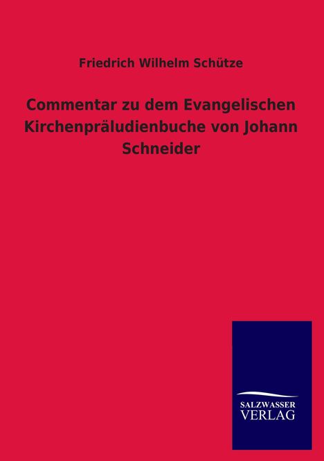 Friedrich Wilhelm Schütze: Commentar zu dem Evangelischen Kirchenpräludienbuche von Johann Schneider, Kartoniert / Broschiert